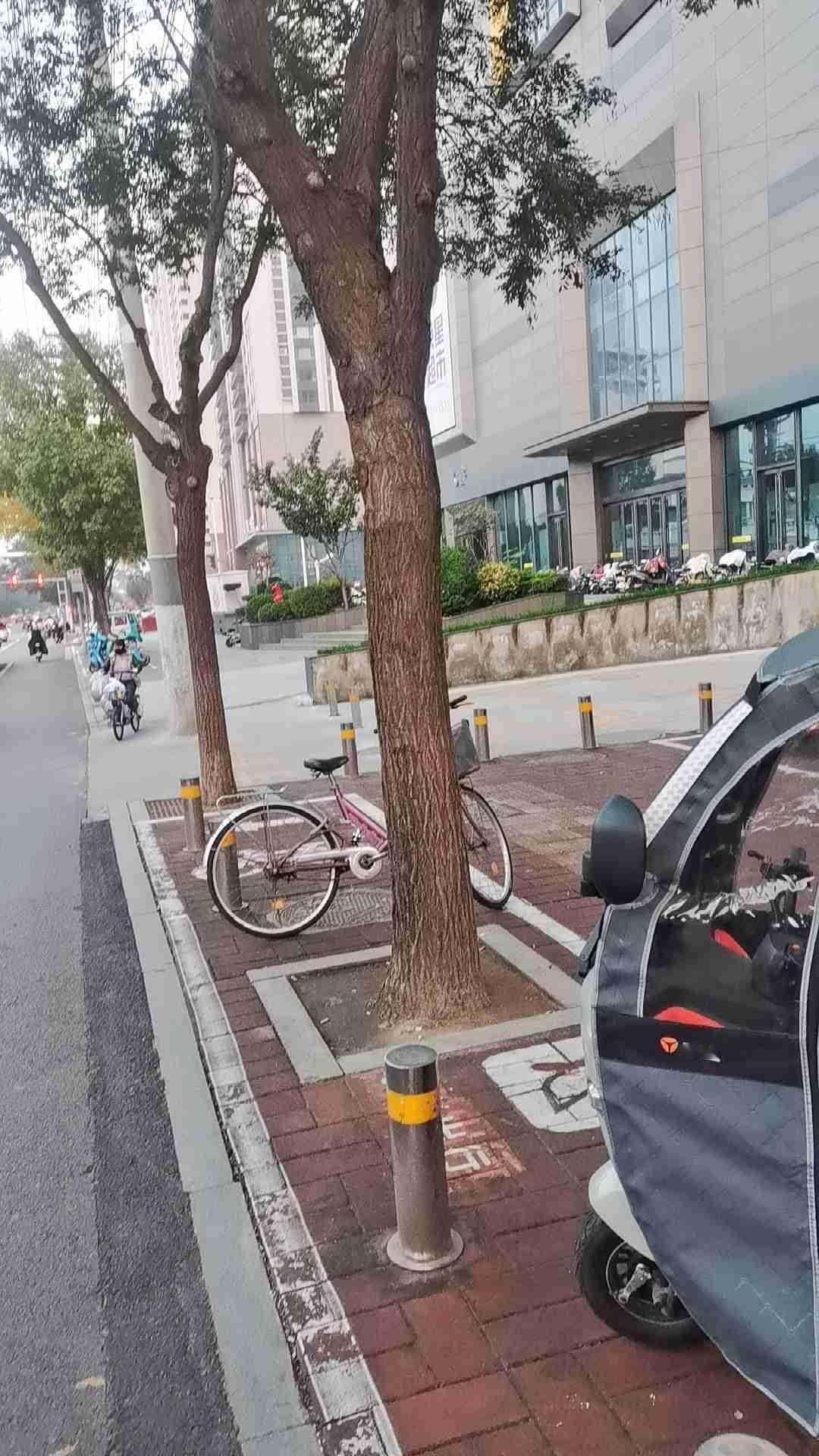 我的今日状态:😁轻松愉快 我这里的天气:☀️晴天 城市里的一个角落里,有自行车,有电动三轮车,有规划放自行车的地方,有骑行的大妈路过。寒冷的冬天里,树木落叶了,已经被园林师傅修建过了。地上的混凝土因为有了人气,才没有显得那么灰蒙。
