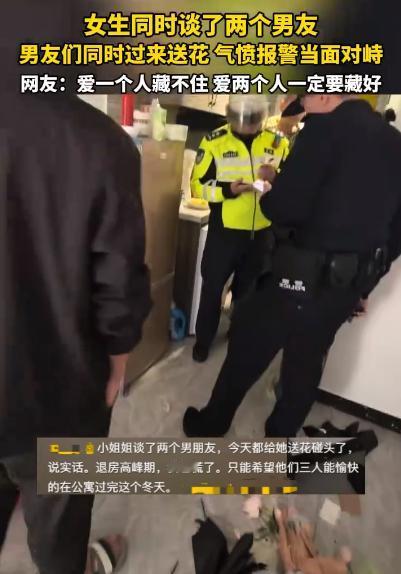 江苏一女生同时谈了2个男友,没想到,她生日当天,2个男友同时过来送花,结果在她家门口碰见,双方顿时大动肝火,都说自己是女生的男友,气愤报警当面对峙,网友:爱一个人藏不住,爱两个人一定要藏好! “你到底跟几个人处对象了?”其中一个男生在女生家门口吼出的这句话,直接把这场闹剧的火苗点到了天上。本来是个再正常不过的生日,结果却因为一束花、两段感情、三个人的纠缠,彻底变了味。 按理说,如果女生稍微计划一下,也许还能错开时间,可偏偏事儿就这么巧,两个男生恰巧选择了同样的时间赶到女生家门口,而且手里还都拿着花。 两个人一抬头,对上了眼,气氛立马就不对劲了。一个男生先问:“你找谁?”,而另外一个男生冷声回:“我找我女朋友。” 短短六个字,空气差点炸开。双方都愣住了两秒,意识到彼此说的是同一个人,那一下像是脑袋被敲了一记闷棍。原本来送花的喜悦,这一下全变成了愤怒、不解,还有点被羞辱后的恼火。 他们当场在女生家门口吵了起来,从最开始的“你是谁”吵到“你们怎么认识的”,再到互相质疑对方是不是小三。吵到最后,两个人都气破防了,谁也不肯退让,甚至有点赌气的意味:“今天就把话说清楚,必须当面对质!” 而警察赶来时,也是一脸无奈,这种感情纠纷本来就最难调解,而且现场两人火气还这么大。最终只能把双方劝散,提醒他们理智处理私人感情。 当事情被传到网上后,评论区很是热闹。有的网友揶揄:“爱一个人藏不住,爱两个人一定要藏好。”还有不少人替两个男生不值:“你们俩争来争去,她可能连一个都没想选。” 整件事看似荒唐,其实就是普通年轻人在感情中的典型矛盾:想要被爱,也想保留选择,但往往会忘记,别人也是带着心来的,不是临时演员。 只能说,感情不是试衣间,也不是超市试吃,你可以慢慢挑,但不能先据为己有,并且还把别人蒙在鼓里。你希望能有更好更合适的选择,但也不能因此去牺牲别人的感情。 虽然感情这东西十分复杂,也确实十分难以抉择,但有一点是固定的:能坦诚的人,才配得到真心;能承担的人,才配得到未来。 信息来源: 观象视频丨女生同时谈了两个男友,男友们同时过来送花,气愤报警当面对峙 文丨小王 编辑丨史叔