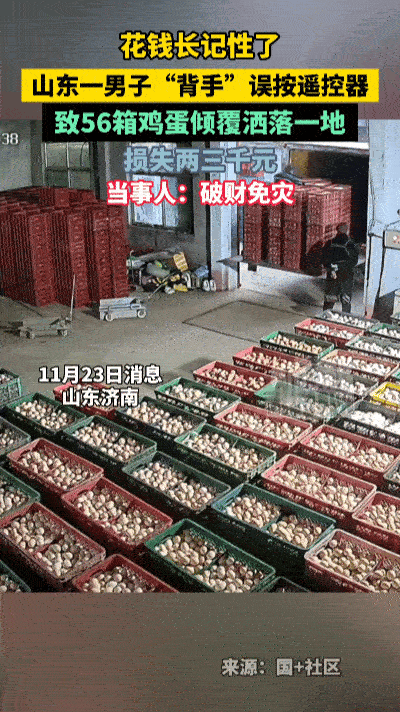 笑不活了!济南大哥背手按遥控卸鸡蛋,56箱蛋液淌满地损失3千! 济南一女子实拍对象卸货翻车名场面,全程又气又笑!对象在仓库卸鸡蛋时,手握升降台遥控器竟单手背在身后操作,仗着自己熟练压根不看按键。本想按下降键稳放货物,指尖一滑误触下翻键,升降台瞬间向外翻折,车上56箱鸡蛋轰然滑落,蛋壳碎裂声此起彼伏,蛋液混着碎壳淌了一地,大半鸡蛋直接报废,损失近3千元。 女子当场目睹惨剧,气得当场怒斥对象,等怒火稍减,两人只能蹲在地上心疼收拾,一点点分拣完好的鸡蛋。女子无奈吐槽:“事已至此,只能当破财免灾了!” 对象也满脸懊悔,连连认错,坦言再也不敢盲目自信,以后按遥控必低头看清按键,这次真是花钱买了个深刻教训。 济南卸鸡蛋翻车名场面 自信过头的翻车现场 生活迷惑操作大赏 粗心大意的代价 社死瞬间实录 你见过最离谱的粗心翻车事件是什么?评论区聊聊,让大家乐呵同时也提个醒!