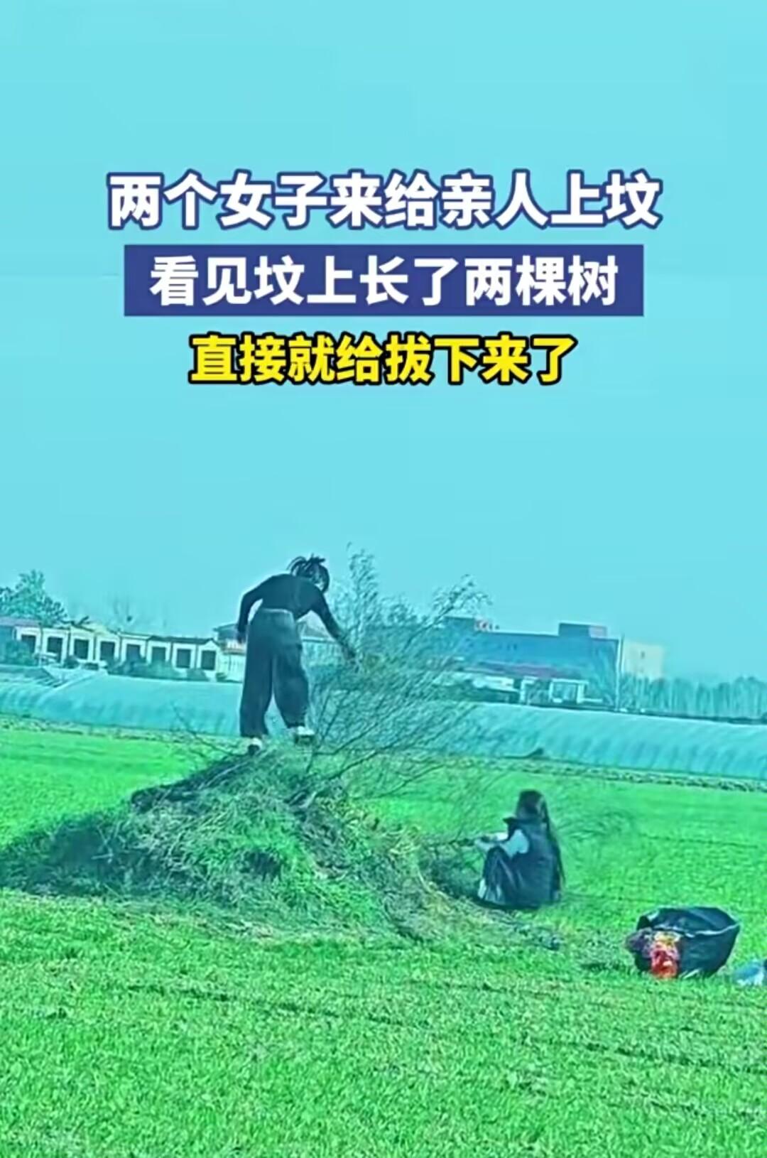 俩大姐去给亲人上坟,瞅见坟头冒了两棵小树,没多想就直接拔了。 坟头的草啊树啊,哪能这么随便拔呢?老辈人传的风水讲究可不是瞎扯,坟头长草木那是 “地气旺” 的征兆,说明先人埋的地方养人,是在护着子孙后代呢。自然冒出来的草,是生气的象征,透着一股子活气,只要不是柳树、榕树那种根系扎得深、能把坟拱裂的树,普通小树反而能挡风雨、聚气场,给后人积福。这随便一拔,不就把这份 “地气福泽” 给断了吗? 上坟图的是尽孝是念想,亲人在地下安息,草木是他们和这片土地相融的见证,也是那份牵挂的延续。瞎拔一气,看似 “干净”,实则既不尊重自然,也辜负了先人那份默默的守护。 真要尽孝,不如多花点心思清理缠坟的藤蔓、挡坟门的杂木,那些自然生长的草和无害的树,就让它们好好长着。孝心从来不是做表面功夫,不是拔得干干净净才叫重视,而是心里记着先人,顺着自然规律来 ,那坟头的草木,其实是先人给后人留的 “福气记号”,比拔得光秃秃强多了。大家对坟头拔树这事怎么看?到底该不该拔呢? 情感 上坟