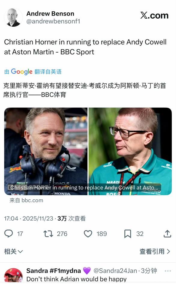 这一切都是因为维斯塔潘,FIA似乎又想来一段阿布扎比奇迹……潘子积分上升到第二名,只差诺里斯24分,还有两站比赛,一切皆有可能! 1、原红牛领队霍纳因为维斯塔潘被红牛解雇,如今可能接任阿斯顿马丁首席执行官。 2、诺里斯、皮亚斯特里双车DSQ。这样的剧情谁能想到呢!