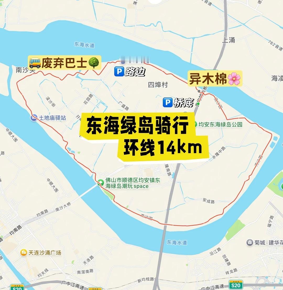 99%的人都不知道的宫崎骏小岛🌳🎠太好骑了 谁能想到顺德竟还藏着这么一个精致的宫崎骏童话小岛呢👀 废弃巴士藤蔓🚌特别有宫崎骏龙猫等车那一幕的feel 这个季节异木棉也盛开了,粉粉的一整片,十分少女🎀 加上堤坝上大片大片的绿色🍀天空、江水也蓝蓝的 各自鲜艳,色彩十足🌈还原童话的每一幕 这里就是顺德的「东海绿岛」 一圈14km,100%全铺装0烂路修路 可以家庭休闲骑,也可以公路车沉浸骑 可盐可甜,十分推荐 一、停车攻略🅿️ 1. 定位选择一:东海绿岛北侧地上停车场 2. 推荐理由:这里是高速路桥底,比较安静,可以安静穿戴(适合运动爱好者) 1. 定位选择二:均安南沙人工沙滩 2. 推荐理由:车停路边,这是个露营草地,有小吃和饮料车,也有双人自行车可以租🚲配套比较多(适合露营出游休闲家庭) 二、骑行线路🚴♀️ 1. Igp路书号:2220908 2. 总长:环岛一圈14km 3. 路况:100%柏油路!!!没有烂路、也没有施工!!!很沉浸!太难得了!!! 绿道彩虹线🌈标识很清晰,沿着指示走就可以,只有一条路 4. 方向:推荐【逆时针】骑行,离江面进,少车辆汇入 三、打卡点📸️ 1. 废旧巴士🚌:均安南沙人工沙滩,往西约2km(没有具体定位)这里特别适合日系出片 2. 异木棉粉色花海🌸:东海绿道北侧停车场,出来往江边走,向西及向东走都是异木棉,现在开得很灿烂 3. 各种堤坝弯道🛣️堤坝草坪🍀等等~一步一景 骑了就行 一秒进入宫崎骏的童话世界 户外骑行 顺德旅游 佛山骑行 广州骑行 深圳骑行 骑行路线 骑车看风景