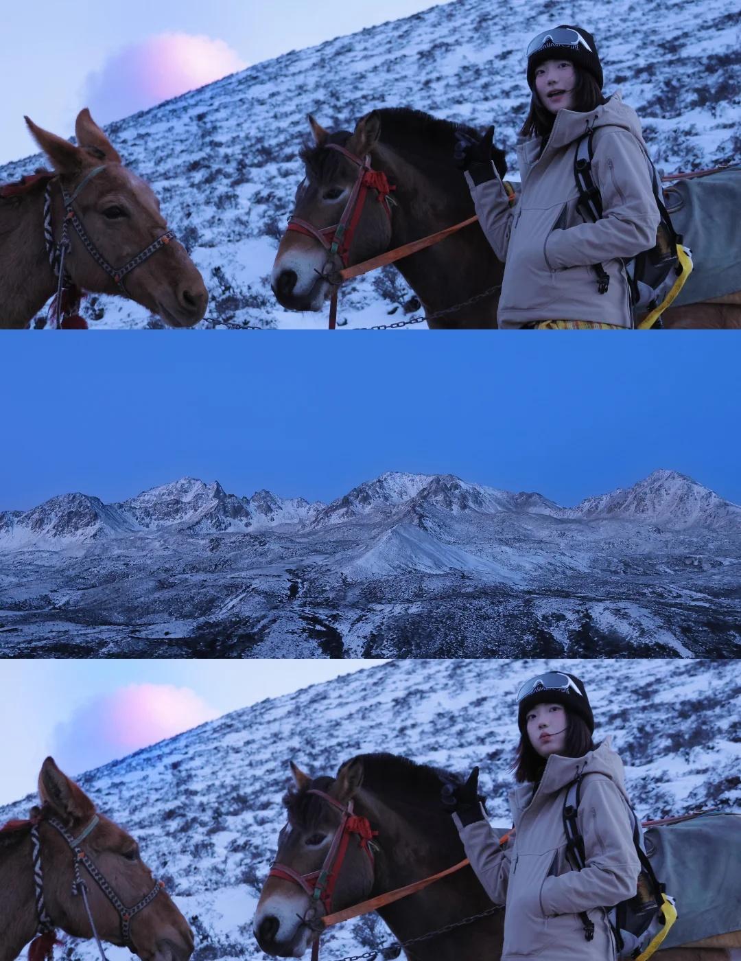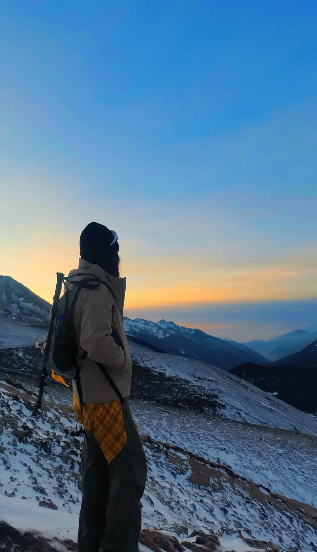 浪漫的野马海子永远不过时! 新手徒步高原地区看雪山绝佳美景的首选! 今年3月初重庆出发攻略(两天一夜): 🚗重庆主城区自驾出发导航康定:开车6小时左右,当天到了在康定城区感受一下当地文化和风景,休息一晚上,第二天早上6点吃完早饭出发导航雪门坎(野马海子),一个小时多,在一个u型弯的位置,牌子上面有写野马海子注意事项。 🏔️野马海子全程往返大概需要三小时左右(不算玩耍拍照时间) 🗺️路程:6➕公里左右。海拔:4200➕。两步路轨迹:直接搜野马海子。 ⚠️上山后可以先不急上垭口,横穿,再走垭口下面,有一条小沟可以跟着走,上面路风大,等日出差不多出来以后在上垭口看日出还有日照金山。 之后呢就正常走到海子拍照玩耍即可啦!(海子3月就结冰了,现在11月底应该也快结冰了) 下山的时候也不建议走横切线,建议原路返回。 🏔️装备:冰爪、登山杖、墨镜、头灯 ⚠️夜爬注意。冲锋衣、抓绒、速干、内搭保暖等。袜子建议穿厚或者羊毛袜。手套,个人小建议:高反建议携带热水、可乐、布洛芬、氧气瓶等抗高反物品。 ❗️❗️❗️户外徒步保暖很重要,风很大。 遗憾是没有看到云海!后面还想去遇一下云海! 户外徒步 野马海子