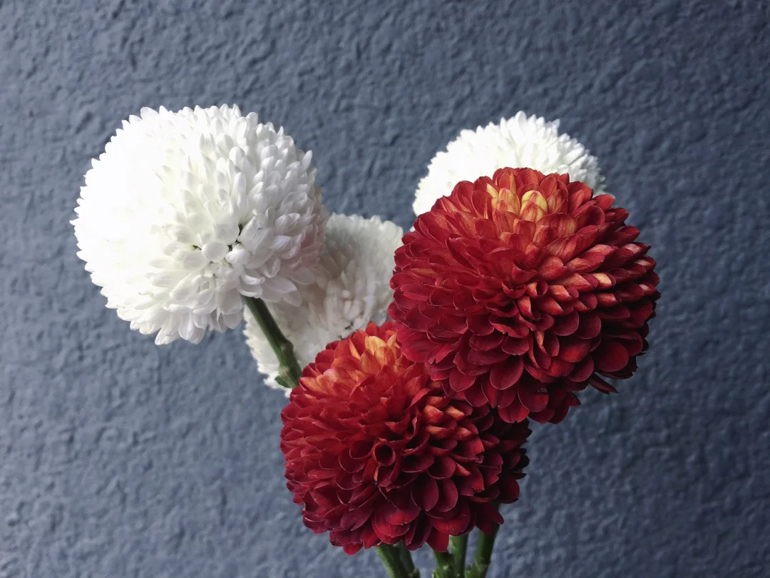 🔴⚪️搭配:乒乓菊是比较百搭的花材,适合搭配自然风、韩式风、现代风等风格花束;在插花中因其可爱讨喜的造型,能够增加作品的趣味性和活泼性。
