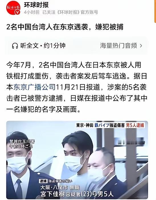 日本先下手了,两名中国台湾人在东京被害! ​两名中国台湾同胞在东京神田车站附近走着,突然被五名日本人用铁棍追打,直接重伤送医,袭击者还开车跑了。 ​事发地位于东京千代田区神田车站周边,这里餐饮店与商业设施密集,是游客常经的繁华路段。 两名受害者姓陈、姓林,都是三十出头的普通从业者,从中国台湾来东京对接跨境美妆贸易,没招谁没惹谁,满心想着谈完合作早点处理后续事宜,却没料到繁华街头会突遭横祸。事发当天下午五点多,正是晚高峰前奏,神田车站周边人流渐密,俩人刚从合作商户的店里出来,手里攥着合同副本,沿着人行道往地铁站走,刚拐过一家拉面店,五名穿着黑色连帽外套的日本男子就从路边一辆黑色轿车里钻了出来,手里攥着钢管、铁棍,没说半句缘由,径直朝着俩人冲了过来。 陈先生反应快些,见势不妙想拉着林先生往旁边商场跑,可对方速度更快,一根铁棍直接砸在他后背,疼得他踉跄一步,没等站稳,又被人踹倒在地,头部结结实实挨了两下,当场眼前发黑晕了过去;林先生想弯腰扶他,胳膊刚伸出去,肩胛骨就被钢管砸中,骨头碎裂的剧痛顺着胳膊窜上来,鲜血瞬间浸透了衬衫衣袖,顺着指尖滴在水泥地上,染红了一小片区域。周围不少路人吓得下意识躲闪,有餐饮店店员探出头看了一眼,被其中一名袭击者挥棍瞪视,赶紧缩了回去;还有两名游客想拿出手机拍嫌疑人特征,怕被发现又赶紧收回,全程不过两分钟,五名袭击者见俩人倒在地上没了反抗能力,转身就钻进轿车,猛踩油门往JR神田线方向逃窜,车牌号被路人拍到半截,模糊得没法辨认。 路人见状赶紧报警、叫救护车,十分钟后救护车赶到,医护人员把浑身是伤的俩人抬上担架,紧急送往附近的东京医科大学附属医院。后续诊断结果让人揪心:陈先生颅骨骨裂、颅内出血,术后住进ICU观察,暂时脱离生命危险却始终没清醒;林先生肩胛骨粉碎性骨折、全身多处软组织挫伤,伤口缝合了十几针,连抬手都费劲。俩人在台湾的家人接到医院通知时,正在家里等着他们返程的消息,得知突发意外,当场慌了神,连夜加急办签证、订机票,第二天一早赶到东京医院,看到病床上插着管子、浑身缠满纱布的亲人,哭得直发抖,连话都说不连贯,只能赶紧联系中国驻日使馆求助。 使馆工作人员接到求助后,当天就赶往医院对接,一边协调院方调配优质医疗资源全力救治,一边正式向日本警方提交诉求,要求尽快查清案件真相、锁定嫌疑人、依法严惩施暴者。可日本警方的处置进度,却让人满是失望:调取周边监控时,只拍到袭击者的模糊身影,半截车牌号没法锁定车辆;走访事发地商户和目击者,大多因为害怕施暴者报复,要么说没看清细节,要么干脆拒绝配合,调查刚起步就陷入僵局。更让人寒心的是,这不是近年第一起针对华人的无端暴力袭击——去年东京新宿,一名中国留学生深夜返校,被三名日本青年围堵殴打致肋骨骨折;今年年初大阪,一名华人店主因为拒绝当地小混混勒索,店铺被砸、人被打伤,两起案子到现在都没抓到嫌疑人,警方给出的回应始终是“嫌疑人流动性大、缺乏直接证据”,敷衍态度藏都藏不住。 明眼人都能看出,日本警方的不作为,本质是对这类外籍人士被袭击案件重视不足,甚至在变相纵容排外暴力。近年日本经济下行、通胀居高不下,不少年轻人找不到稳定工作,生活压力陡增,部分民粹势力趁机煽风点火,把生活困境归咎于外籍人士,煽动排外情绪,一些极端分子跟风施暴,而警方对这类暴力行为的漠视,让施暴者越来越有恃无恐,敢在人流密集的繁华街头光天化日下伤人,还能从容逃跑。神田车站周边遍布商铺、写字楼,监控设备密集,按理说锁定嫌疑人、追查车辆不该这么难,可警方迟迟没突破,难免让人怀疑,是否存在对排外暴力睁一只眼闭一只眼的情况。 事件发酵后,两岸同胞都炸了锅:台湾网友在社交平台刷起相关话题,怒斥日本施暴者的残忍,要求警方正视案件、尽快破案,保障外籍人士在日安全;大陆网友也密切关注事态进展,纷纷留言希望使馆持续跟进,帮受害者和家属维权,不让同胞在海外受委屈。说到底,不管是大陆同胞还是台湾同胞,血脉里都流着一样的血,都是中国人,在海外遭遇无端伤害,理应得到全力保障,中国驻日使馆的介入,既是在维护同胞的合法权益,也是在明确传递态度:中国同胞的安全不容侵犯,任何针对中国同胞的暴力行为,都必须付出应有的代价。 日本方面若还抱着敷衍态度处置案件,纵容排外暴力蔓延,不仅会让更多在日外籍人士陷入安全危机,还会彻底损害自身的国际形象。繁华街头的无端施暴,不是“偶然冲突”,而是排外情绪失控的必然结果,若不及时打击施暴者、遏制民粹歪风,只会让更多无辜者遭殃。现在所有人都在等着日本警方给出说法,等着施暴者被绳之以法,给两名受伤的中国台湾同胞、给所有在日中国同胞一个公平交代。 各位读者你们怎么看?欢迎在评论区讨论。