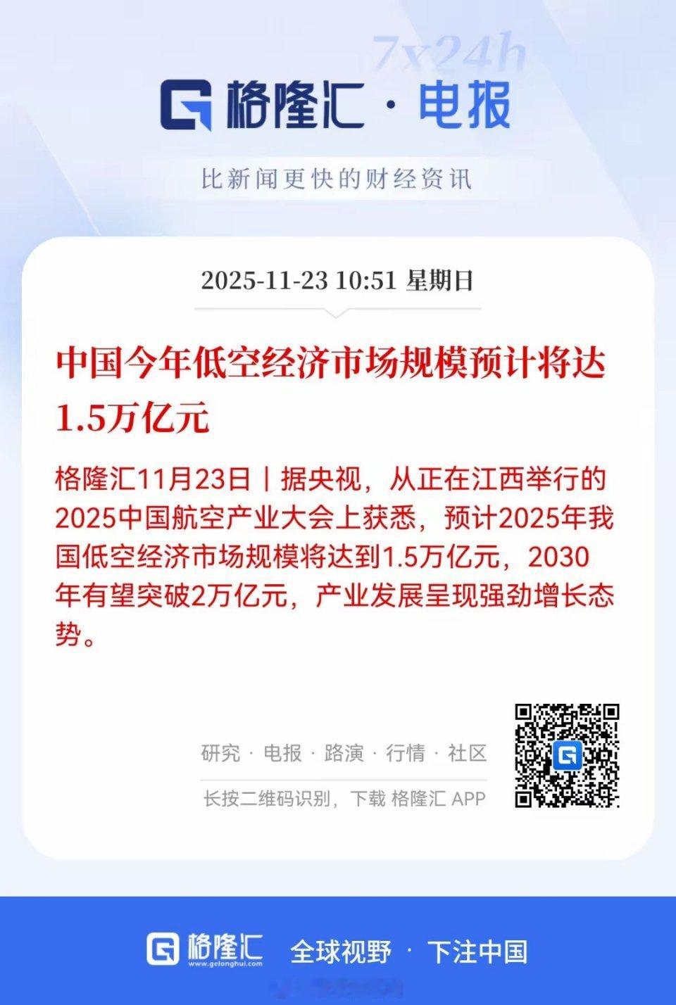 重磅利好!重磅利好!我国低空经济爆发!谁会是下一只10倍股?2025年我国低空经济市场规模预计达1.5万亿元,2030年有望突破2万亿元,标志着该产业已从试点探索迈入规模化增长阶段。当前产业链呈现“政策驱动+技术突破+场景落地”的协同发展特征:整机制造领域eVTOL(电动垂直起降飞行器)适航认证加速,核心零部件国产替代率持续提升,空管系统与低空基建逐步实现“全国一张网”,运营服务场景向物流、文旅等领域快速拓展。从产业结构看,整机制造是价值核心,头部企业已实现技术卡位;核心零部件是国产替代关键,动力系统、超材料等环节壁垒显著;空管与配套系统是基建刚需,政策红利直接覆盖;运营服务则是场景落地的核心载体,订单增长确定性较高。这一格局下,产业链各环节的上市公司已呈现业绩分化,技术壁垒高、订单可见性强的标的增长更具持续性。中国低空经济核心上市公司全名单(按产业链环节分类)一、整机制造类1. 万丰奥威(002085):通航整机龙头,布局eVTOL与纯电飞机2. 亿航智能(EH.US):全球载人eVTOL商业化领先企业,获首张适航证3. 航天彩虹(002389):无人机核心企业,“特种飞行器+新材料”双主业4. 中直股份(600038):直升机全产业链龙头,军民市场双覆盖5. 山河智能(002097):工程机械转型通航制造,布局低空旅游二、核心零部件类1. 宗申动力(001696):航空发动机国产替代核心,适配eVTOL/无人机2. 光启技术(002625):超材料龙头,产品适配低空装备3. 震裕科技(300752):飞行汽车定转子铁芯供应商4. 北摩高科(002985):航空制动领军企业5. 光威复材(300699):eVTOL碳纤维机身核心供应商6. 卧龙电驱(600580):eVTOL永磁同步电机唯一量产企业7. 菲利华(300395):航空航天高端材料核心供应商三、空管与配套系统类1. 莱斯信息(688631):空管系统市占第一,主导“天牧”低空管理系统2. 海康威视(002415):智慧空管方案龙头,合作顺丰/京东覆盖低空物流3. 华测导航(300627):高精度导航赋能低空经济4. 四川九洲(000801):低空飞行服务平台主导方,空管雷达市占靠前5. 深城交(301091):智慧交通融合,主导深圳低空基建6. 中科星图(688568):低空数字底座提供商,获多城市订单四、运营与应用服务类1. 中信海直(000099):低空运营全牌照,海上石油服务市占超60%2. 纵横股份(688070):工业无人机市占20%,布局低空数据服务3. 威海广泰(002111):无人机起降设备唯一民航认证,参与通用机场改造4. 苏交科(300284):低空基建规划龙头,承接长三角/大湾区项目5. 顺丰控股(002352):低空物流场景龙头,持有95%物流无人机牌照6. 祥源文旅(600576):低空旅游稀缺标的,运营eVTOL载人游览项目最后提醒:以上内容仅代表个人观点,不构成任何推荐建议,投资有风险,入市需谨慎。
