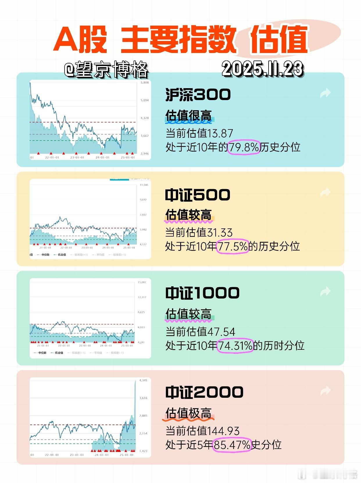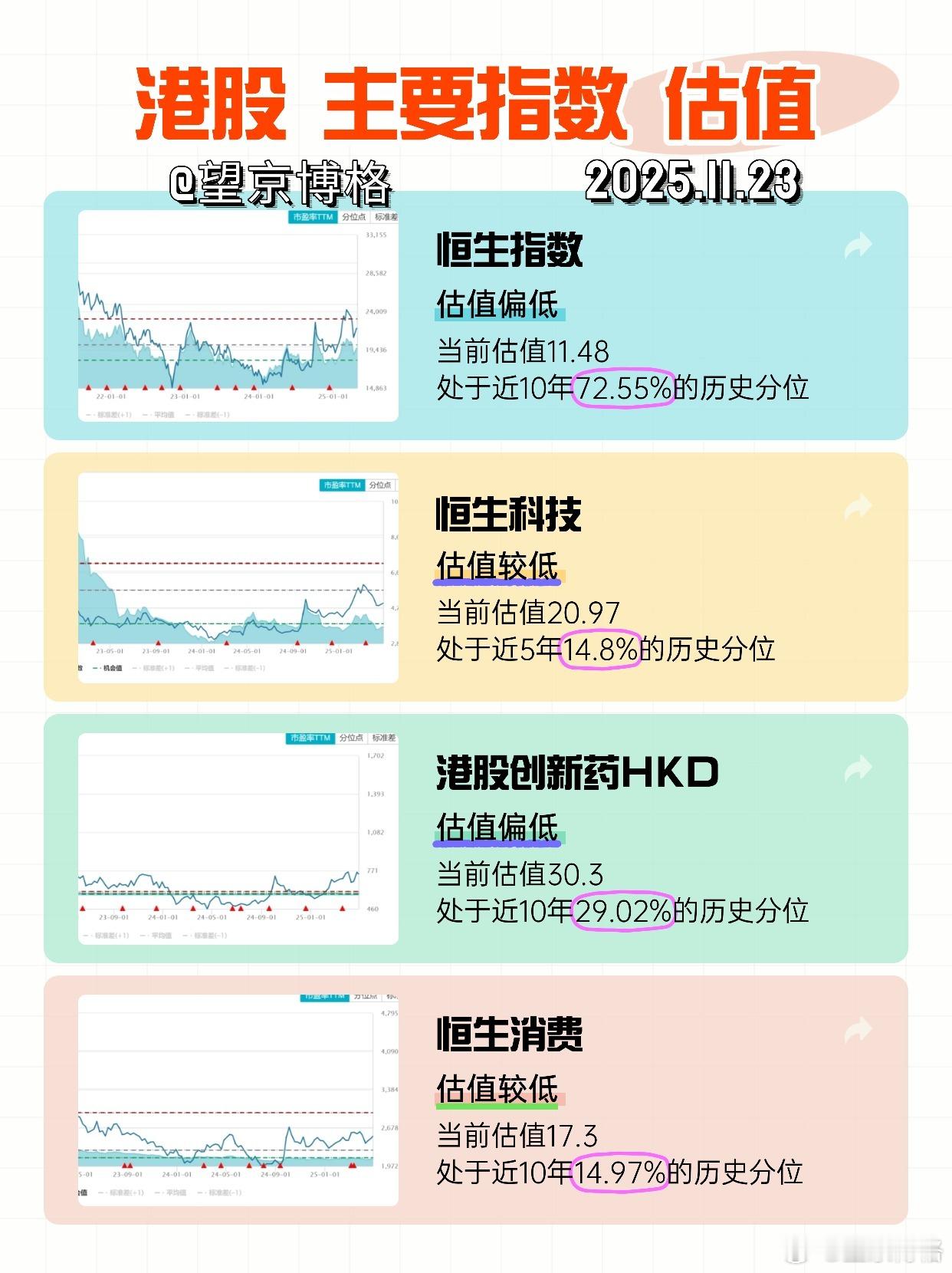 主要市场指数估值(2025/11/23)最近一周,A股和港股都跌了不少,所以其各