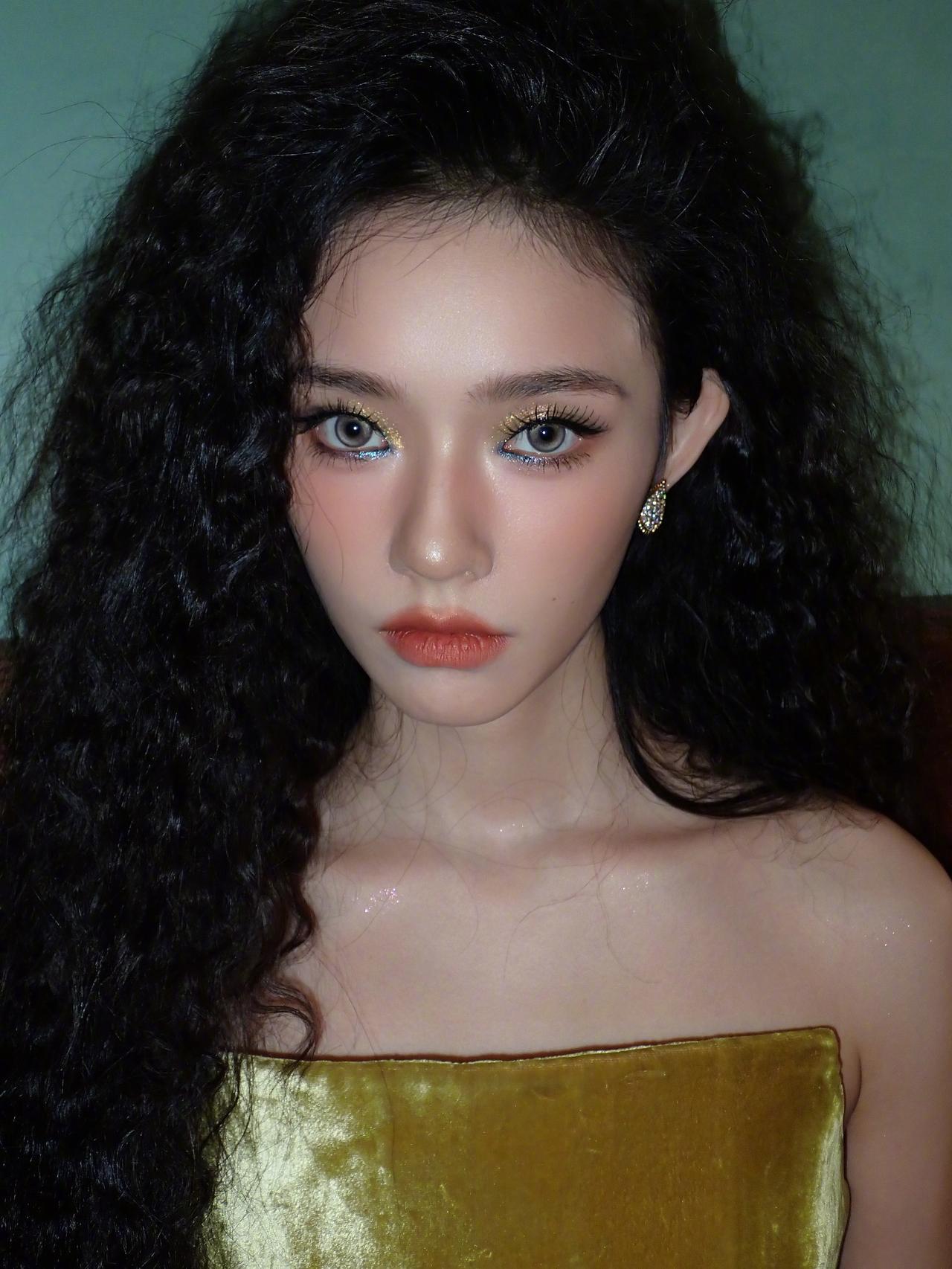 易梦玲的五官很神奇,下半张脸像杨颖,特别是嘴巴,下半张脸像林允,特别是眼睛,