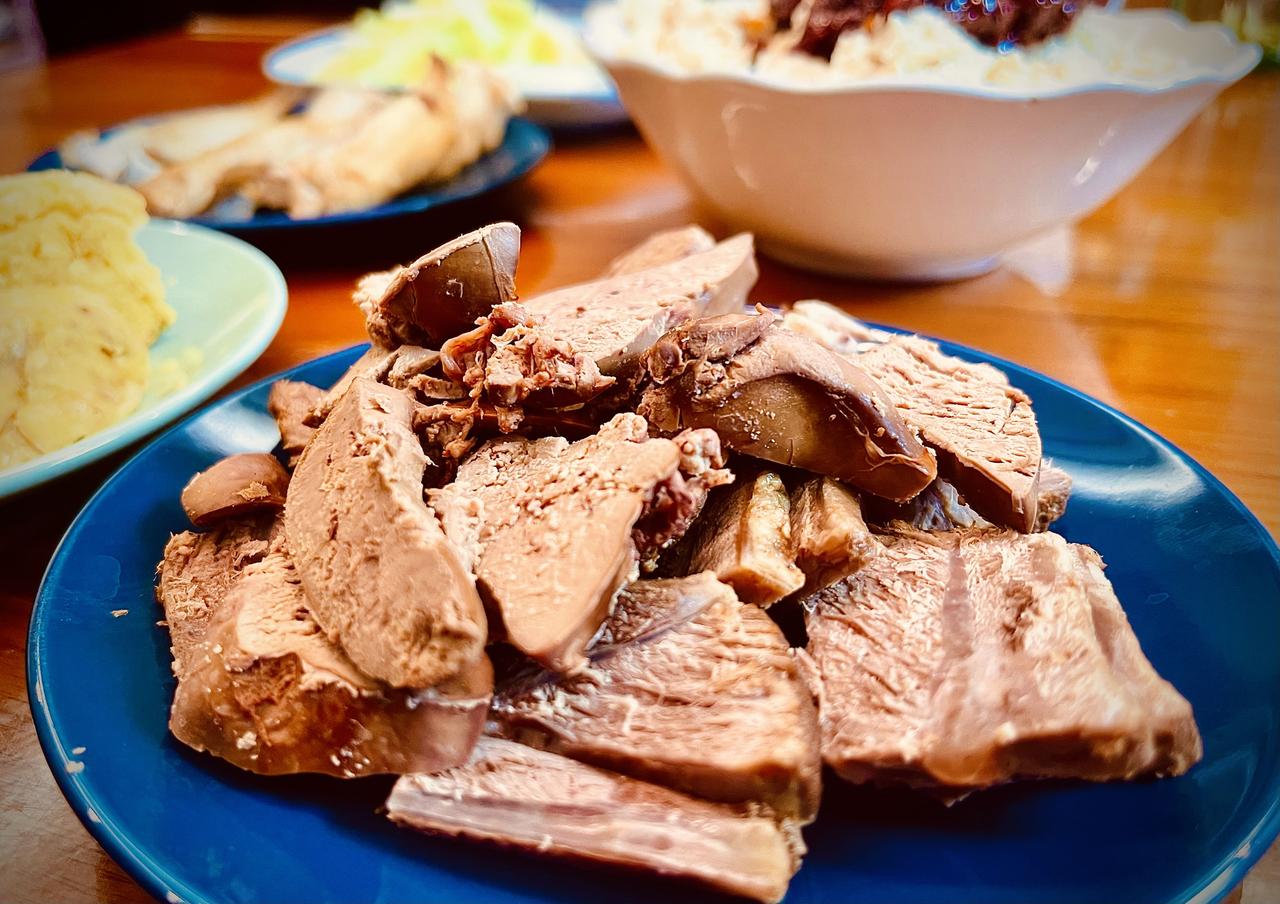 昨晚酱了三条金钱牛腱,今早用老汤煮了牛肉面。俺闺女说有点咸了,我还往酱汤里兑了点