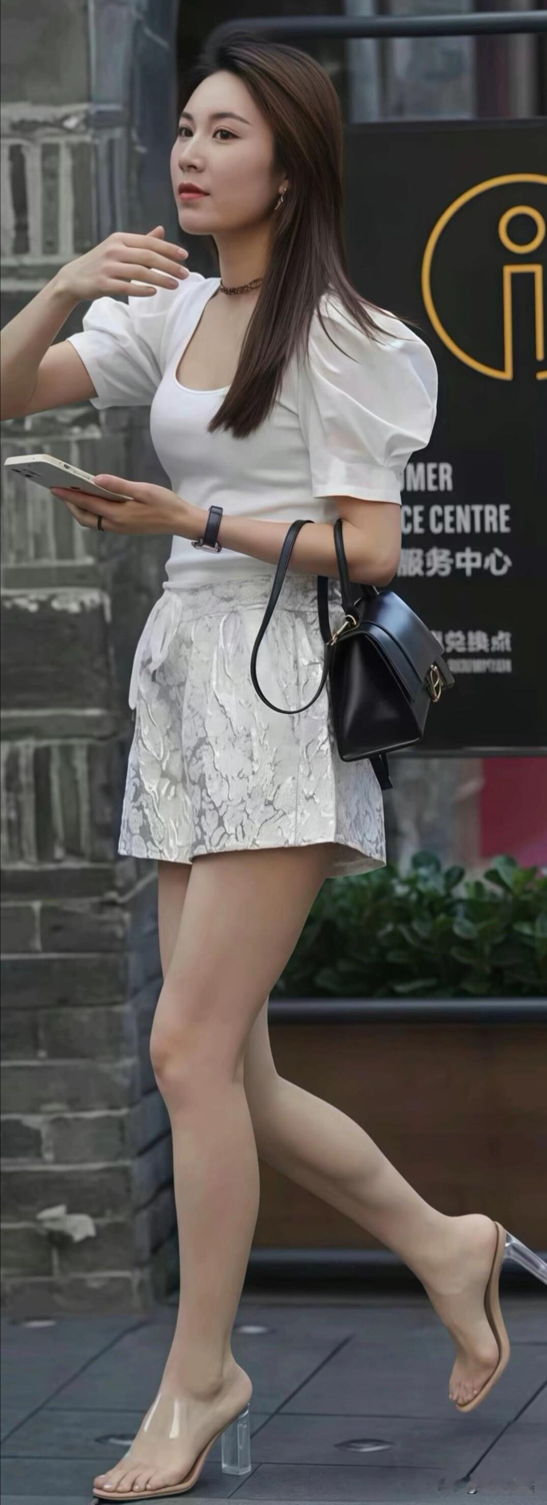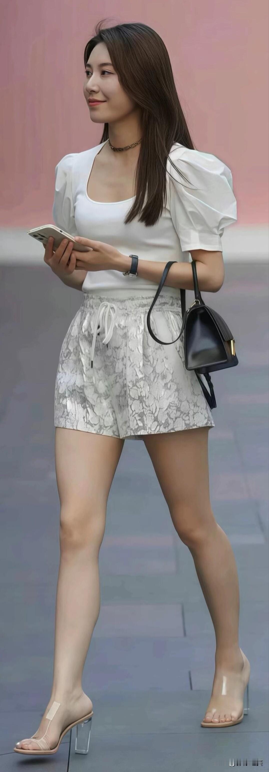白色泡泡袖上衣温柔又俏皮,搭银色亮面印花短裤超亮眼,简约配饰加分,日常出街自带氛围感~