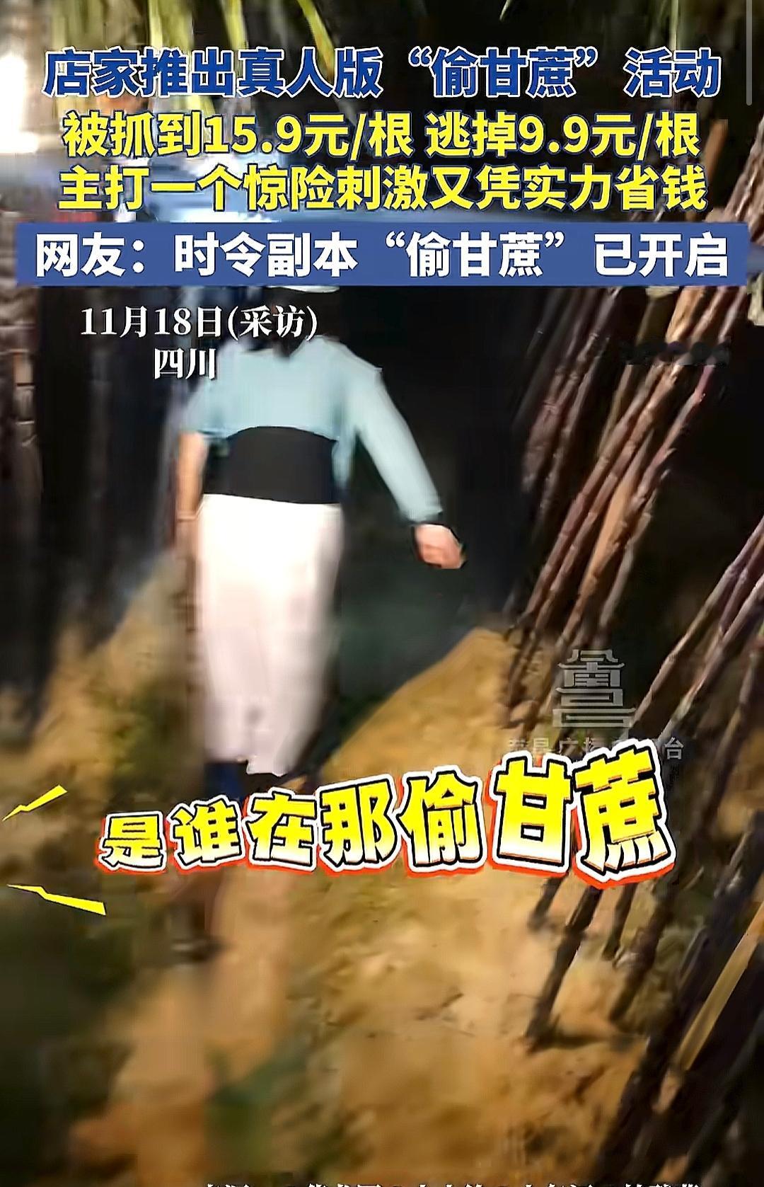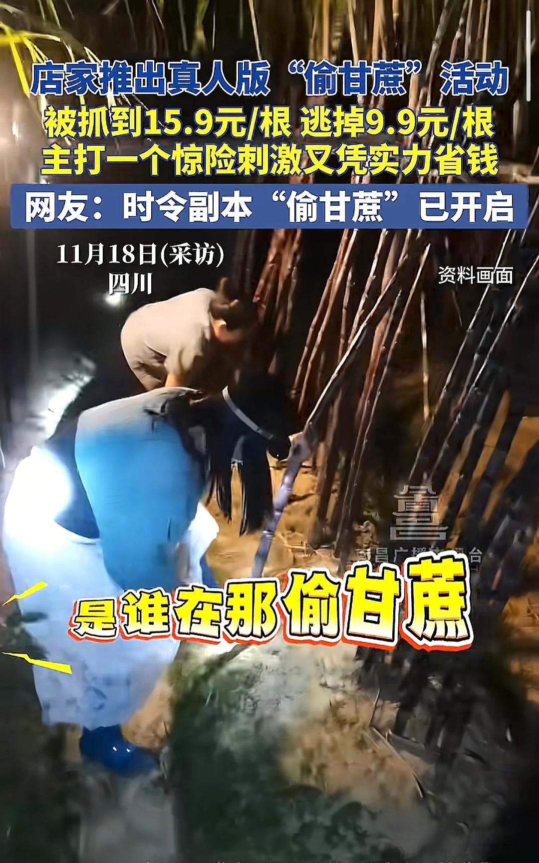 四川眉山这家卖甘蔗的火了,因为他们举行了一个真人版偷甘蔗的活动。 给顾客配手电筒,还配备了抓人的NPC和小狗巡逻,主打一个真实的惊险刺激,让人真真切切的体会到这种偷感,找回小时候那种在别人家地里偷瓜,偷红薯的那种感觉。 这活动不仅让商家更快卖出了甘蔗,更多的是让顾客体会到了久违的快感。 什么时候金店能举行类似的活动就好了。 就想问一下这甘蔗能边偷边吃吗?大家想去体验一下吗? 偷甘蔗游戏 偷甘蔗挑战赛 如何看待“可偷甘蔗地”成打卡点 你小时候有过偷甘蔗的经历吗
