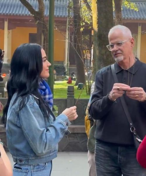 41岁“水果姐”Katy Perry刚在杭州连开两场演唱会,就现身灵隐寺虔诚许愿!牛仔套装休闲随性,入乡随俗朝四方三拜,还大方与粉丝合影比心。网友直呼“反差萌”!你偶遇她了吗?快来评论区分享你的“追星现场”!