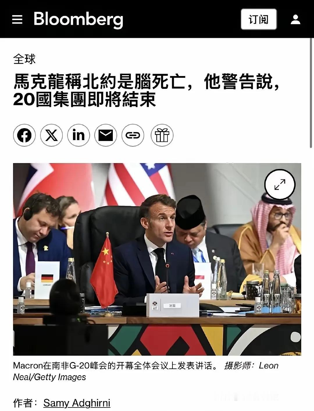 “北约是脑死亡”,法国总统马克龙在南非召开的G20峰会上直言不讳地表示。 这份被美媒披露完整内容的计划,从头到尾透着美国的单边主义。特朗普团队制定方案时,和俄罗斯有过沟通,却没跟任何北约盟友商量,完全是自家说了算。 要知道北约这些年在俄乌冲突里陷得极深,武器供给、情报支持、士兵培训样样都来,甚至帮着做战术安排、操控无人机,几乎把乌克兰打造成了 “准北约国”,现在盟主突然扔出份协议要大家签字,换谁都接受不了。 计划里的内容更让欧洲脊背发凉。乌克兰得放弃加入北约的念头,军队规模被限制在 60 万人,还得从顿涅茨克部分地区撤军,等于变相承认俄罗斯占的地盘。 最离谱的是,要欧洲出钱出人,在乌克兰建 1200 公里的非军事区派维和部队,美国倒好,抽身之外还能拿救世主剧本。更别提里面藏的生意经 —— 冻结的 1000 亿美元俄资产要投进美国主导的重建项目,美国还得拿一半利润。 欧洲国家的震惊不是没道理。这几年北约把家底和信誉都押在乌克兰,卫星预警机天天在天上转,情报专家跟着乌军一线作战,资金装备流水似的送过去。 现在美国一句话就要改写结局,把欧洲的安全利益当成国内政治筹码。有官员私下吐槽,这比 2019 年美国单方面从叙利亚撤军还过分,当年马克龙第一次说 “北约脑死亡” 只是预警,现在这计划简直是递毒药。 更关键的是这背后的趋势。美国国内的孤立主义越来越明显,不少人觉得欧洲防务该自己买单。计划里虽然提了给乌克兰 10 年安全保障,说遭攻击会武力回应,但谁都清楚,一旦美国想抽身,这承诺随时可能作废。 欧洲这些年靠美国的安全伞过活,国防建设早松了劲,现在伞主人不仅要收租金,还直接定了淋雨的时间,任谁都得慌。 连泽连斯基都没敢直接拒绝,只是说 “不排除考虑”,这态度更让欧洲不安。一个军事同盟的核心决策,能绕开所有协商机制,由一国领导人拍板,结构性缺陷早就藏不住了。就像马克龙在峰会上补的那句,大脑和身体断了连接,四肢再用力也没用。 这场风波没那么容易过去。北约的未来到底怎么走,欧洲要不要自己找新的安全支点,这些问题在 G20 的会场外被反复讨论,答案或许会悄悄改变未来的世界安全格局。 信源:央视网