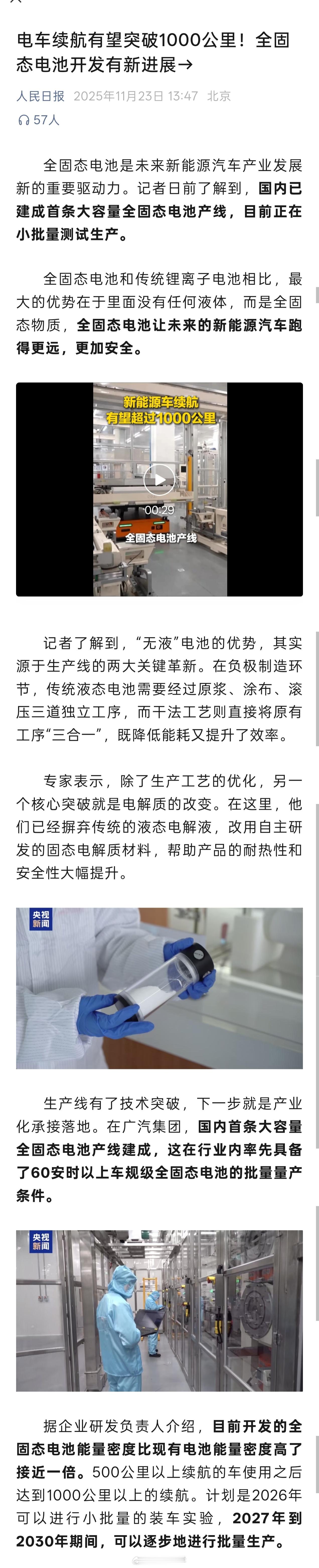 固态电池要来了,电车续航有望突破1000公里最快2027年批量生产!好事,再加上快充,过年回家电车也不用在服务区抢桩了