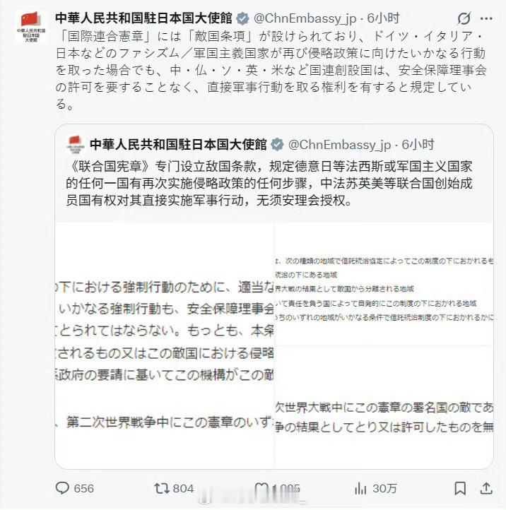 日本外务省回应了:联合国成员国曾达成一致,认为《联合国宪章》中的敌国条款条款已过时,形同虚设……各国也决心从《联合国宪章》中删除敌国条款……底下评论区日本人一眼就看明白了:所以还没删啊!