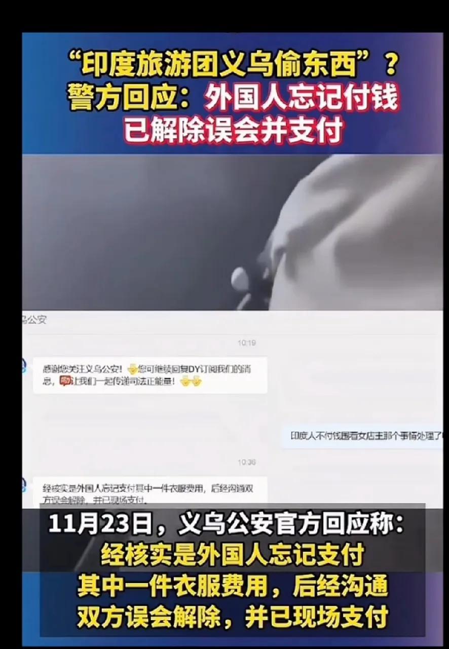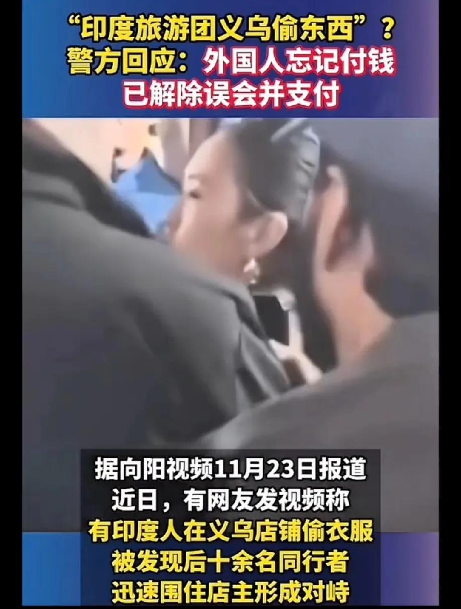 义乌印度人“偷东西”事件后续! 官方经核实,是漏付了其中一件衣服的钱,现已解除误会并支付。
