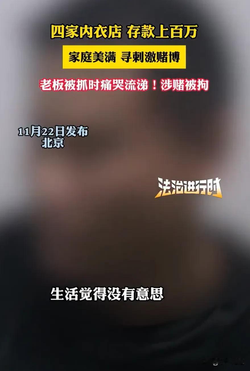 糊涂啊!北京,一男子开了四家内衣店,存款上百万,本是外人羡慕的人生,却因觉得“生活没劲”,迷上赌博,被抓时痛哭:“自己真浑!” 这名李姓老板(化名)的内衣店生意稳定,选品、服务在周边口碑极好,家里妻贤子孝,存款过百万。可他偏不满足,从手机小赌开始,一步步陷进线下赌场,迷上那种“一掷千金”的刺激感。 “开始赢了点,后来输了就想捞本,几百万全扔进去了。”被抓时,李老板蹲在地上哭到崩溃,店里进货钱、家庭存款,甚至跟朋友借的钱,全被他赌没了。 熟悉他的老顾客直叹气:“他以前卖内衣特别实在,怎么就犯了糊涂?” 有人说他是生意太顺闲的,有人觉得是精神空虚。但赌博这东西,沾了就难回头,多少人家因为这个散了,教训还不够吗? 按《治安管理处罚法》,参与赌博赌资较大的,轻则拘留罚款,重则刑事处罚。李老板这事儿,拘留是肯定的,四家店的生意、家里的名声,全毁在这一时冲动上。 好好的日子不过,非要找刺激走歪路。他要是把赌钱的心思放在拓展生意上,比如搞个线上定制,或者给顾客搞点福利,生意只会更好。就算不想忙事业,陪陪家人、跟朋友喝个茶,不比在赌场提心吊胆强? 现在店可能黄了,存款没了,家人跟着丢脸,自己还得进去反省。这图啥? 生活中不少人日子过得不错,偏要找“刺激”走歪路。这种人是该同情还是该警醒?你要是碰到这种情况,会怎么劝?来评论区说说。