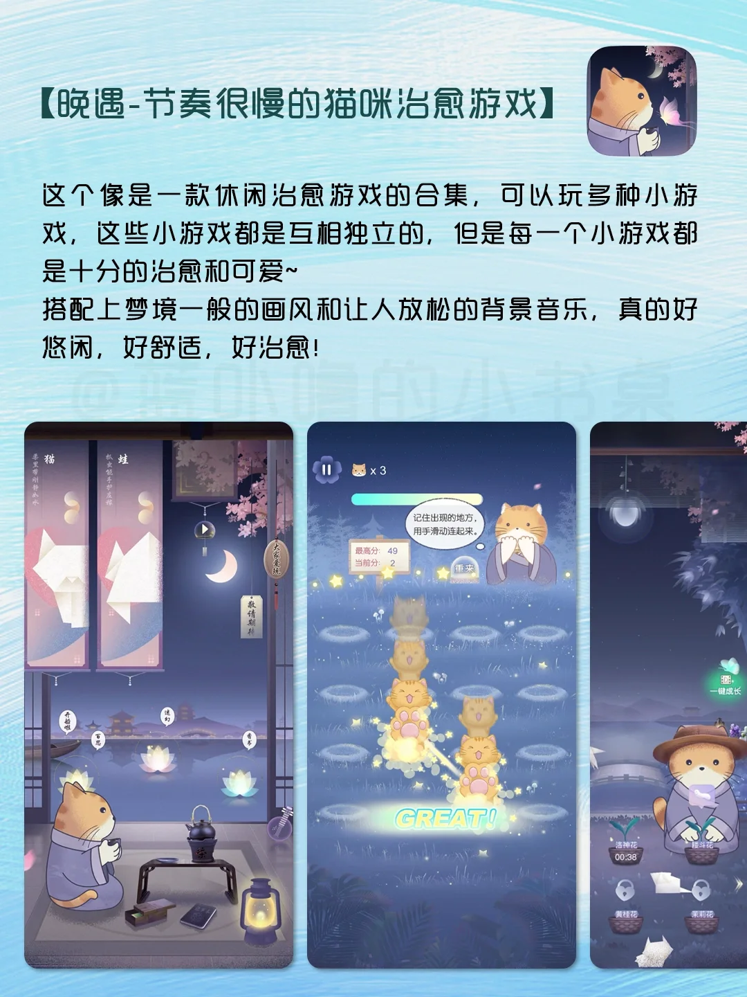 康康这些休闲解压的游戏来治愈生活吧[黄金薯R] [氛围感R]落日山丘-休闲解谜游戏 [氛围感R]她的愿望终未实现-治愈系解谜游戏 [氛围感R]晚遇-节奏很慢的猫咪治愈游戏 [氛围感R]兔兔音乐会-放置养成模拟经营游戏 [氛围感R]夜之森-慢节奏佛系植物养成游戏 [氛围感R]老农种树-田园系养成游戏 [氛围感R]仓鼠蛋糕工厂-模拟经营游戏 跟烦恼和压力说拜拜[喝奶茶R]