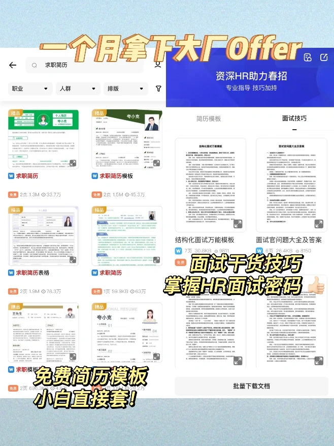 夸克首页,搜【夸克文档】[满月R]里面有很多免费的简历模板,不会做简历的小白直接套用就行了~还有面试干货技巧,面试必问的问题和答案,让HR印象分拉满!