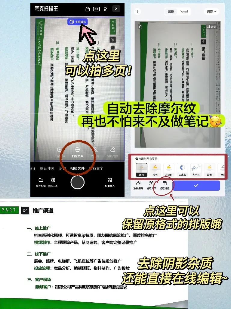 需要纸质文档扫描成电子文档,可以使用【夸克扫描王】,扫描文件提取图文、表格都可以,还能自动修正裁剪、去除阴影杂质!