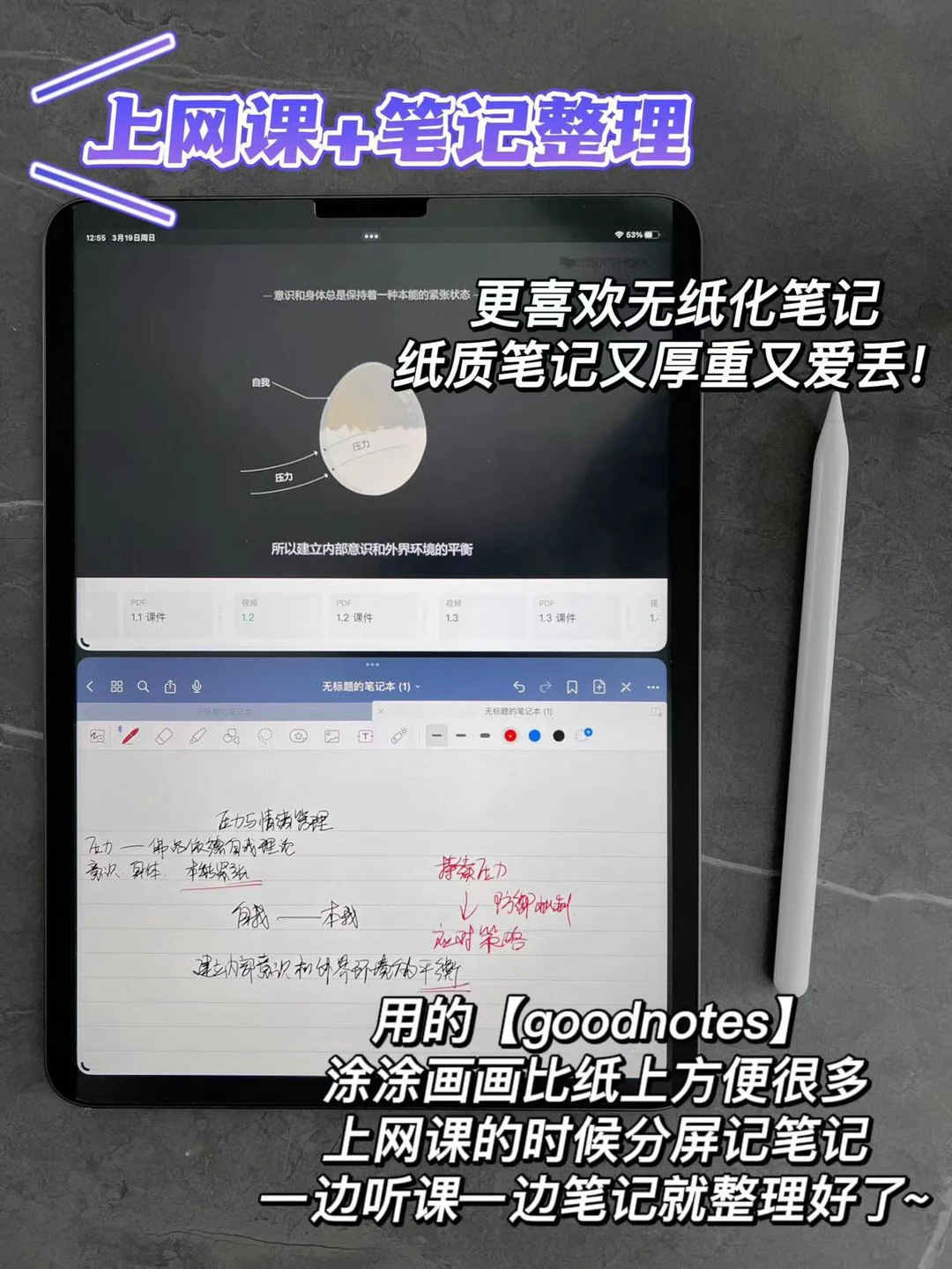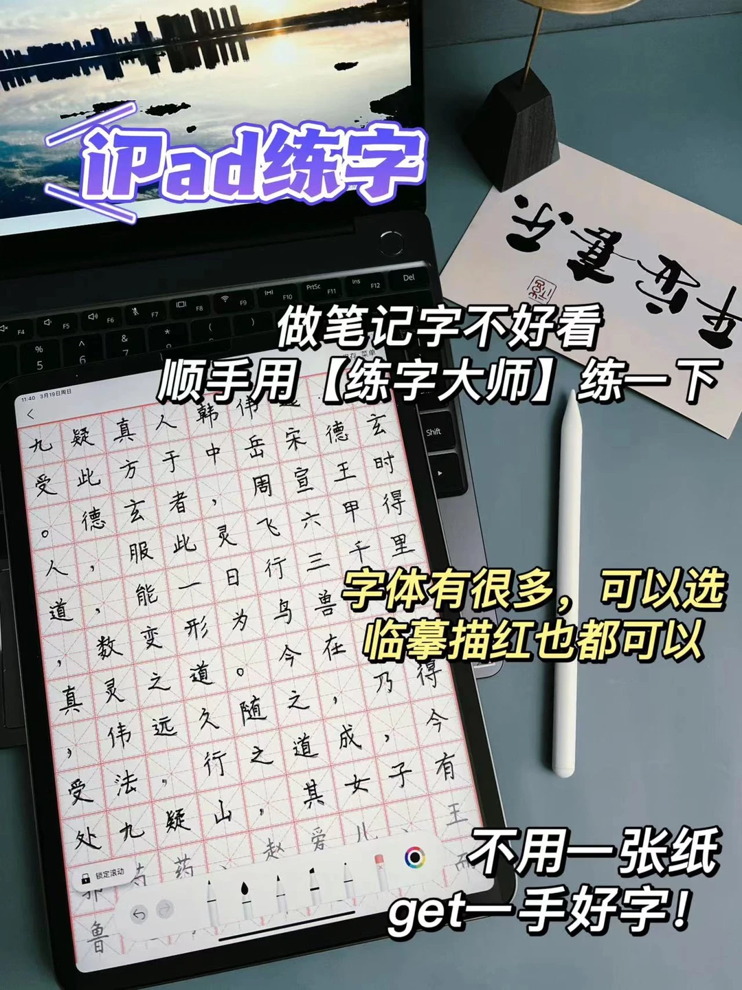 讲真,有多少拥有iPad的家人们在盖泡面呀[笑哭R] 然鹅!练字、无纸化笔记、阅读批注、刷题、做时间管理计划…iPad其实不要更适合移动办公或者学习[偷笑R]悄悄卷起来啊[暗中观察R][暗中观察R][暗中观察R] 图书 备忘录 goodnotes 练字大师 日历 以后外出学习或上课,带一个iPad就行啦!厚重的书籍笔记本都不用带啦[大笑R]配上好用的笔,用它写写画画效率一整个大提升[赞R][赞R][赞R]