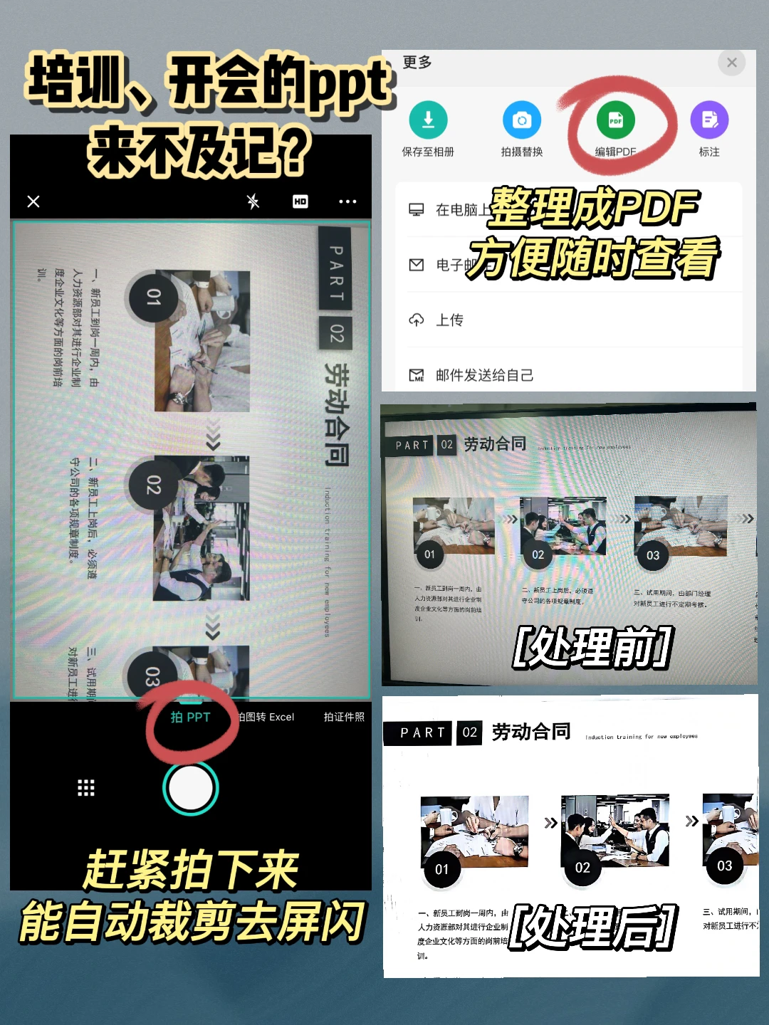 [打卡R]培训、开会的ppt来不及记👉🏻拍下来自动裁剪去屏闪整理成PDF