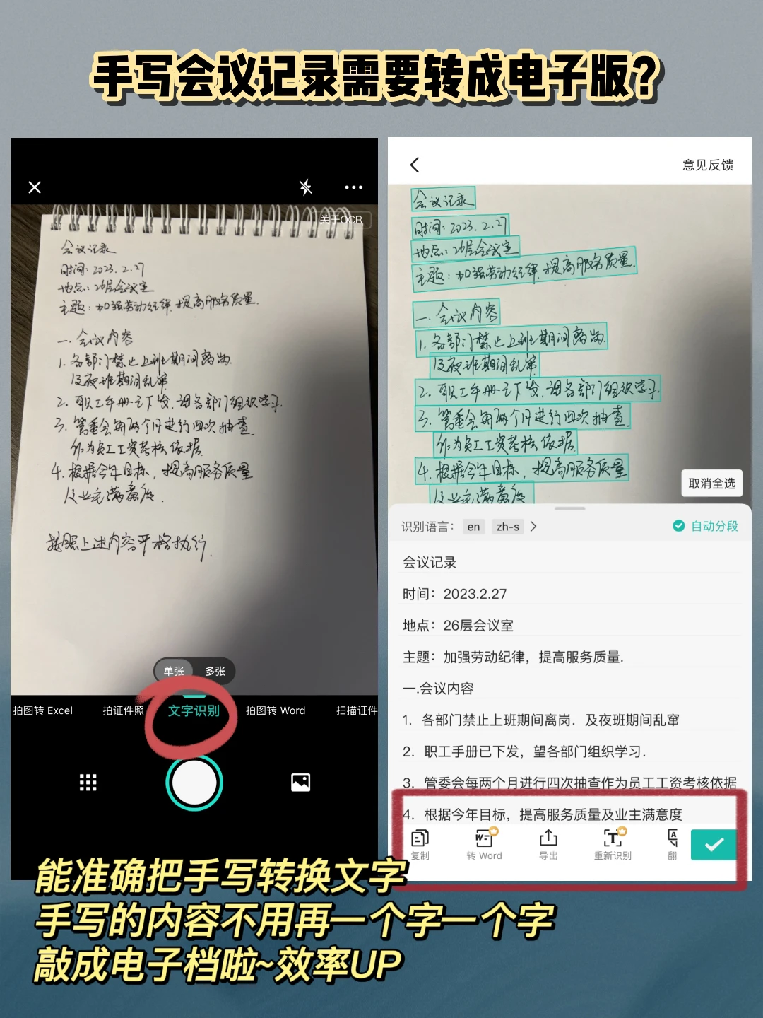 能准确的把手写会议记录转成电子版,机智的我有更多时间摸鱼啦[哇R]