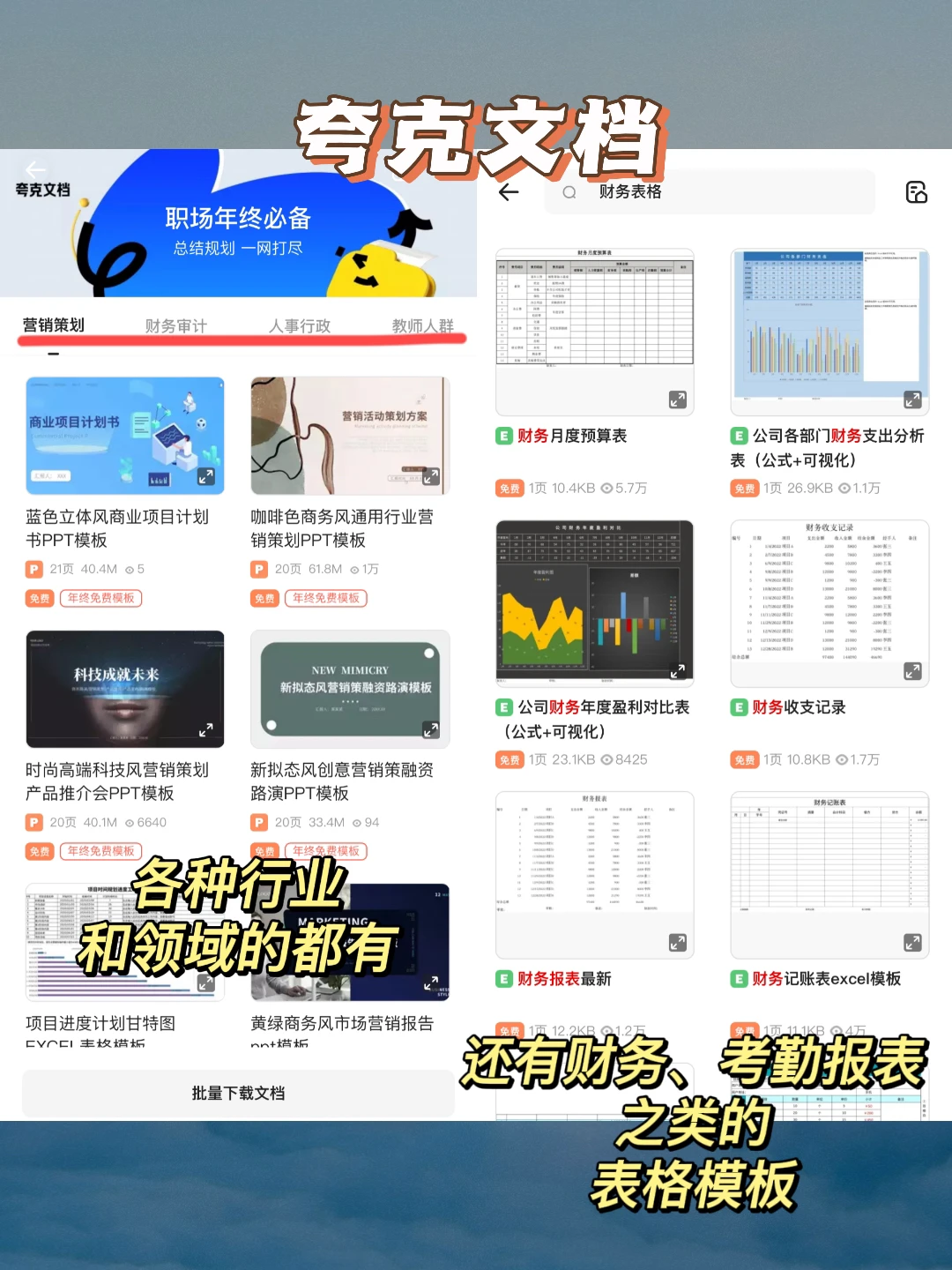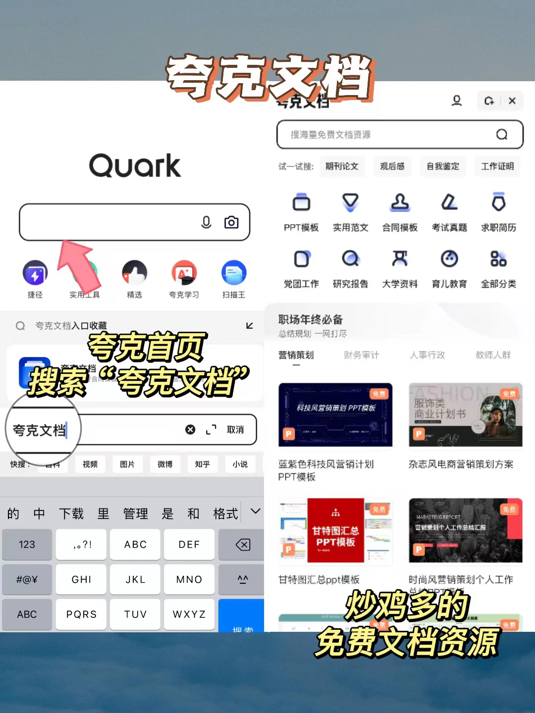 【夸克文档】里面有覆盖策划、教师、财务、行政等多行业的实用总结范文,咱们就是一整个参考的大动作!还有汇报PPT模板,省时省力老板夸爆!