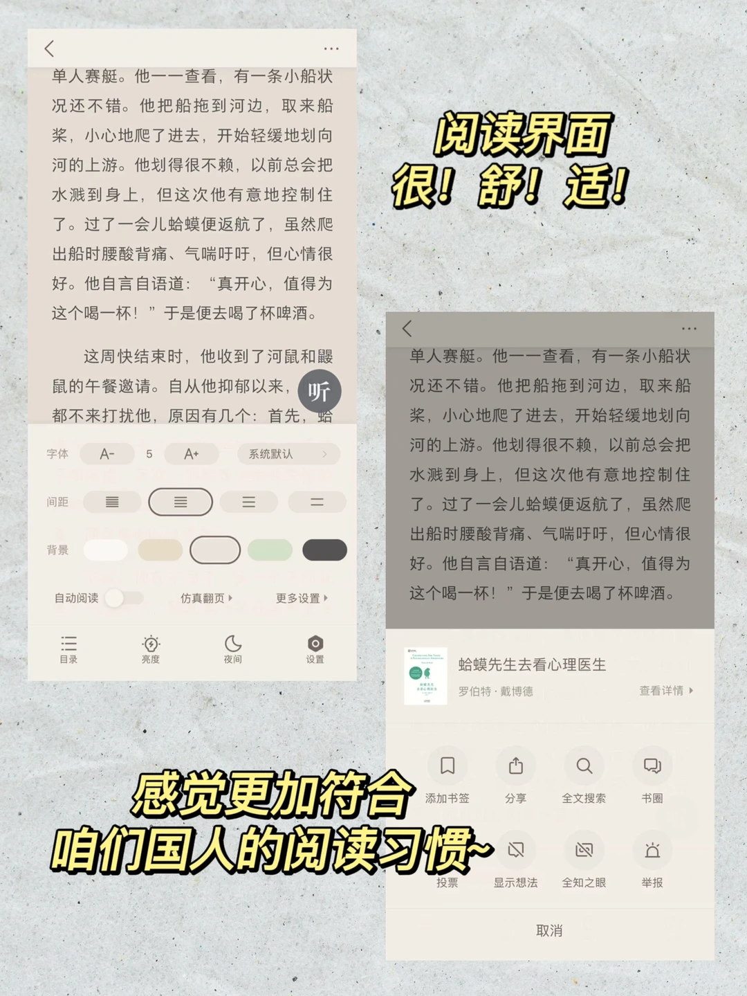 📖阅读界面和使用操作感方面,我觉得也更符合咱们国人的看书习惯