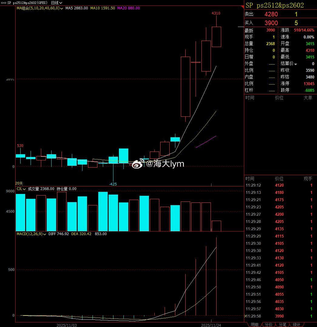 上午碳酸锂期货2605合约增仓近3.4万手,2601合约减仓近1万手,2605合