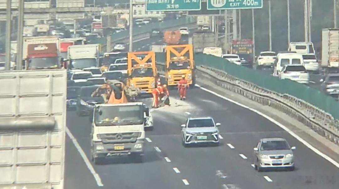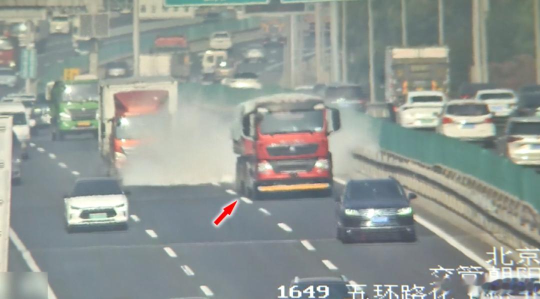 【 北京五环路上突然粉尘弥漫,一货车司机翻牌逃逸?】10月28日中午12点,东五环内环化工桥附近,一辆红色重型半挂货车行驶中装载的水泥袋突然掉落,经后车碾轧,水泥粉尘弥漫空中形成白茫茫景象,司机却径直驶离。该车在五环路内环五方桥至康化桥路段先后两次遗撒8袋水泥,严重威胁道路交通安全
