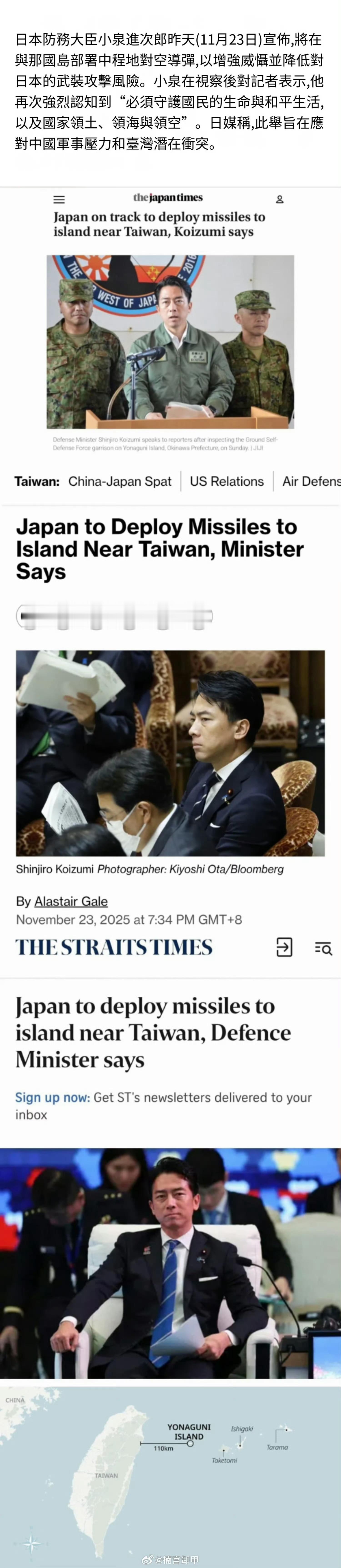 日本将在台湾岛以东部署中程导弹系统。日本不仅不踩刹车反而油门踩到底的节奏。