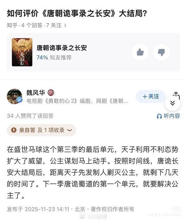 魏风华老师回应接下来的唐诡走向魏编和郭导在🐏文娱直播中,透露以下几点:1️⃣太平公主下一季开头就要下线了,会按历史走向编和拍!2️⃣卢凌风下一季开头会打的天昏地暗,先天政变正式拉开序幕!3️⃣苏无名会继续做官,官还不小,下一季去蜀道!4️⃣下一季会有老费的故事,老费是四川人!5️⃣第六季会探索海上故事!6️⃣演员返场,最重要的是剧情合适!唐朝诡事录之长安‖