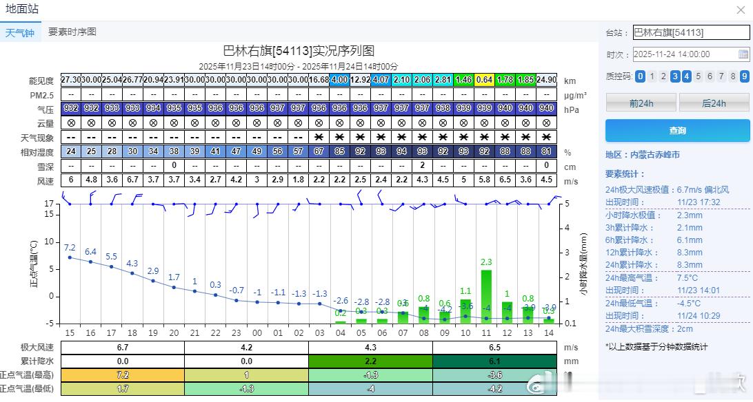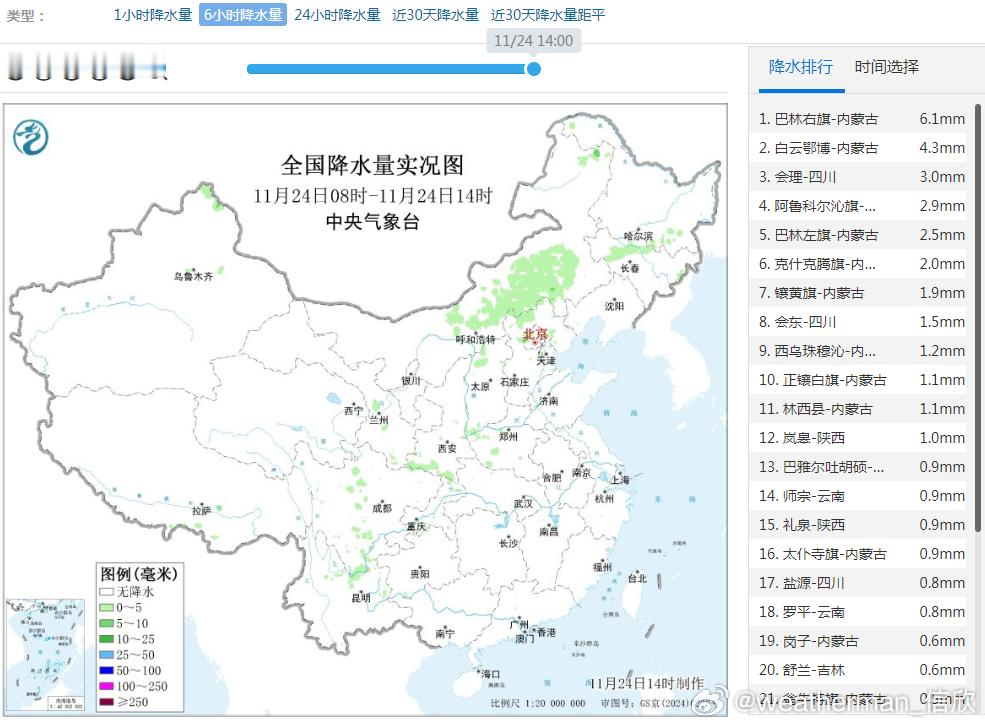 【降水和干燥】今天08-14时,内蒙古中部出现降雪,巴林右旗6.1毫米,排名全国第1。而在西北地区东部到华北黄淮多地,大风使得空气变得更干燥。下午不少站点,相对湿度不足20%,比如西宁11%、郑州13%、石家庄15%、银川16%。甘肃的永昌只有5%。今天下午到明天中午,降雪区会向东北地区转移,此外新疆北部降雪又会增多。而北方其他大多数地区,干燥的天气会持续。