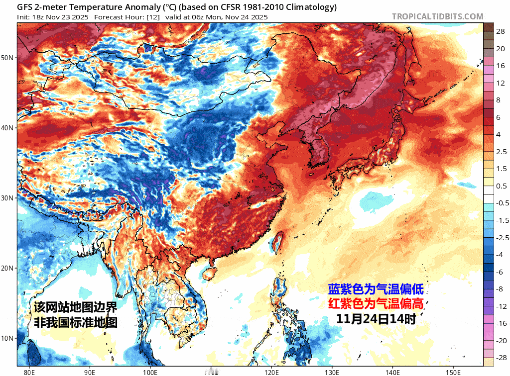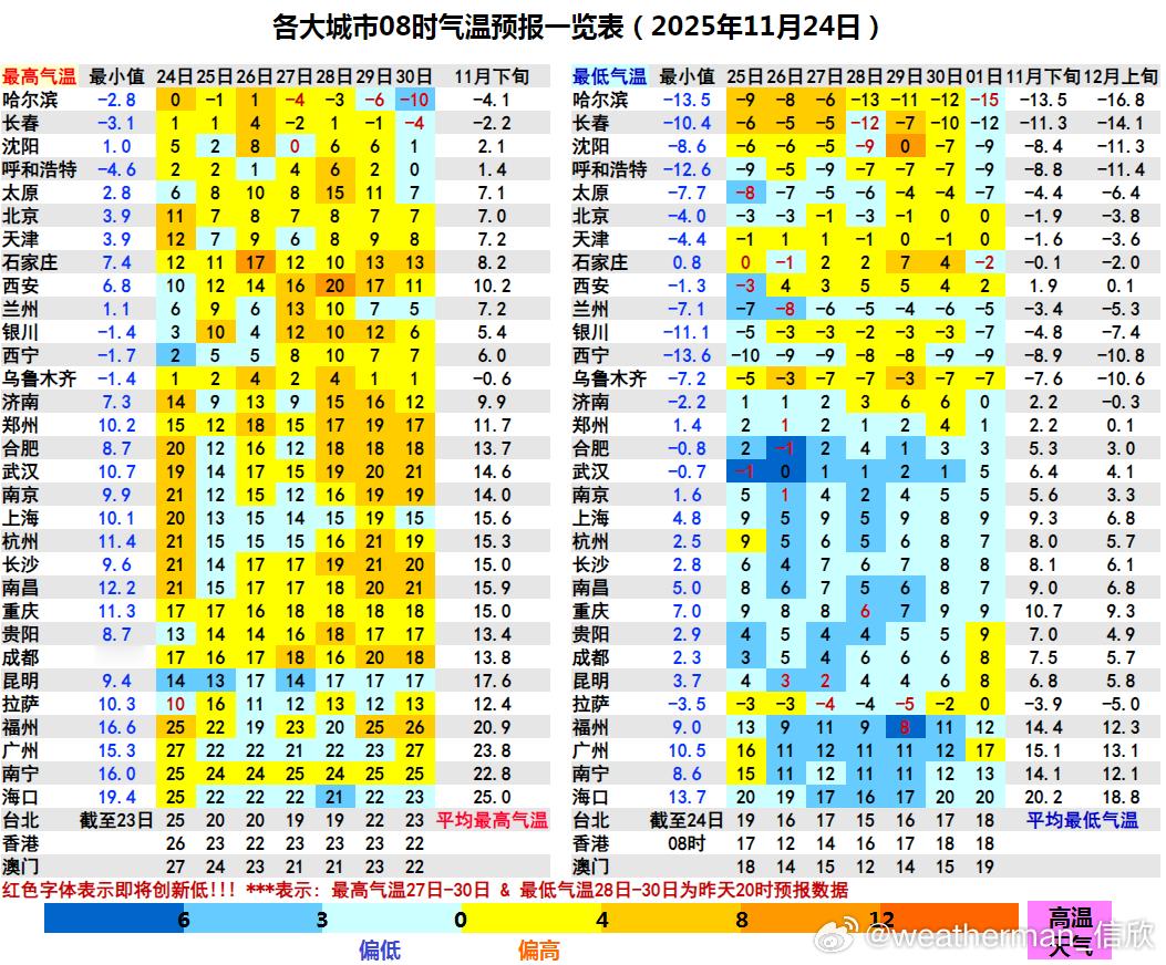 【一周天气——冷空气活跃】本周(11月24日-30日)有3股冷空气先后影响我国,气温起伏变化节奏快。冷空气的影响,大风降温更普遍,西北华北部分地区可能还有沙尘,新疆内蒙古以及黑龙江吉林辽宁还有降雪。但我国其他大部地区,还是晴朗干燥的天气居多。此外本周可能还有台风生成,主要影响南海和海南三沙。1、降水24-25日在内蒙古中东部、东北地区东部、西藏东部、川西高原、新疆北部等地有小到中雪,局地有大雪。西藏四川的降雪是因为南支槽影响,内蒙古和东北降雪因为前一股冷空气影响,新疆降雪为新一股冷空气到来。之后这股冷空气东移,26-27日内蒙古和东北三省还有降雪。29-30日又一股冷空气影响我国北方,高空槽发展较深,地面还有气旋,内蒙古东北部和黑龙江一带有大到暴雪。但这个降雪还有变数。关键要看高空槽发展加深的程度。如果高空槽的等高压和等温线有明显错位,利于槽加深,也进而利于槽前地面气旋发展,雪还可能进一步调强。但如果高空槽的高度场和温度场,错位不明显,槽发展不强,槽前暖平流和涡度平流也会变弱,地面气旋发展不明显,东北的降雪会调弱。因此后期需要关注临近报的修订。图1-3为官方报的降水、欧美数值预报的降水,图4为形势场。我国大部地区处于高空西北气流控制下,因此本周晴朗干燥的天气依然是主流(图5)。另外从数值预报看,26日和29日晚,北京北部山区,存在降雪的可能性。但城区因为低空干燥,出现降雪的难度大。不过去年冬季,也有几次,水汽条件差,但动力抬升条件好,强拧干毛巾、大力出奇迹的情况。所以后面也要关注形势演变以及气象部门的临近预报,是否会有惊喜,但目前不能有太高的预期。2、气温 24-25日,较强冷空气自西向东继续影响我国中东部地区,将带来4~8℃降温,北方局地降温可达10~12℃。25-27日,又一股较强冷空气自北向南影响我国,中东部大部地区将有4~8℃降温,部分地区降温10~12℃。29-30日,冷空气将影响长江以北地区,上述大部地区将有4~6℃降温,局地8~10℃。总体看,本周气温就是起伏不定。北方大多数城市气温在正常-偏高水平波动。东北周末气温可能转偏低。南方地区白天最高气温大多是偏高的,夜间最低气温偏低,昼夜温差显著大于常年11月下旬,早出晚归依然要注意保暖。图6为气温偏低偏高预报。图7为部分城市气温预报列表。银川本周的最高气温基本上,升降犬牙交错,双日降温,单日升温。24-30日最高气温预报:3-10-4-12-10-12-6℃。哈尔滨周五之前基本还是偏暖,26日最高有1℃,但30日最高降至零下10℃,将创入冬后新低。合肥26日最高16℃,但最低零下1℃,温差17℃,昼暖夜冷特征明显。3、大风频繁的冷空气将导致北方多地以及东部海区出现大风天气。24日在华北部分地区,25-27日新疆南部、内蒙古中西部、甘肃中西部、宁夏、陕西中北部、山西西部等地的部分地区有扬沙或浮尘天气,局地有沙尘暴。另外冷空气和潜在的27号台风天琴联手,还会导致南海多大风天气。南海大风可能要持续5-6天时间。