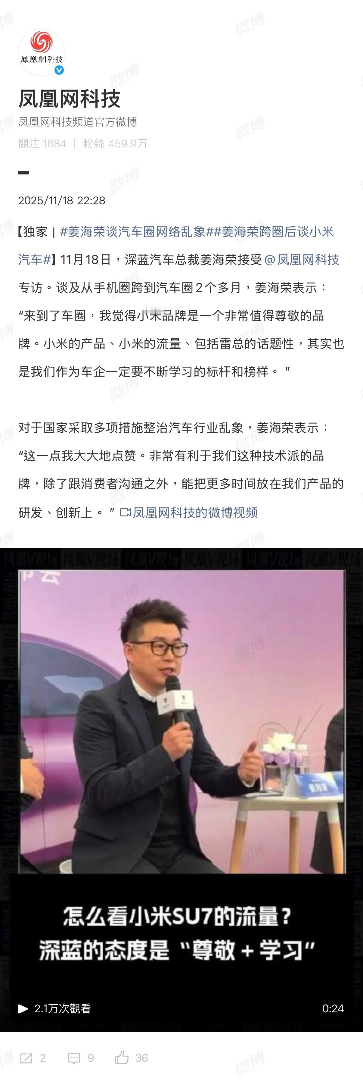 无一例外,小米在产品、营销这块的能力是业内公认的。姜海荣:「小米的产品、流量、雷总的话题性,是我们作为车企一直不断学习的榜样。」赵明:「荣耀则学习小米的营销长处,同时构建自身营销逻辑,毕竟无人能复刻雷军的声量及影响力。」