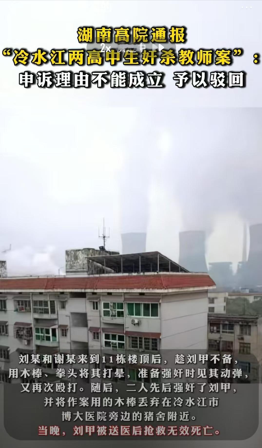 湖南娄底,一名女老师在楼顶散步时,遭到2名高中男生的侵犯,他们还对女老师使用了暴力手段,致女老师死亡。案发后,两人父母告诉他们不要承认,并包庇二人,最终,二人及家长均获刑,可他们竟然不服,多年来一直申诉。 湖南两名高中生看完淫秽视频后,竟然预谋对经常在楼顶散步的女老师下手,施暴过程残忍到让人无法想象,案发后家长还教孩子拒不认罪、疯狂包庇,全家都因此获刑。 可这么多年过去了,他们还是死磕着 “没罪” 到处申诉,直到最近湖南高院的通报出来,才算是给这起持续了十几年的案件画上了句号。 时间回到 2009 年 8 月 25 日晚上,冷水江制碱厂生活区的 11 栋楼顶,女老师刘甲像往常一样在这儿散步。她怎么也不会想到,死神正悄悄逼近。 那会儿,当地两名高中生刘某和谢某刚在门球场边看完手机里的淫秽视频,脑子一热就合计着要对这位经常在楼顶独处的女老师下手。为了保险起见,他们还特意跑到 14 栋楼顶确认了刘甲确实是一个人,然后就直奔 11 栋楼顶而去。 到了楼顶,两人趁刘甲不注意,抄起木棒就往她头上砸,还用拳头猛打,直接把人打晕了。本以为这样就能得逞,可刘甲中途有了动静,两人竟然又对她一顿暴打。 之后,他们对昏迷的刘甲实施了侵犯,完事后把作案用的木棒扔到了博大医院旁边的猪舍附近,就跟没事人一样跑回了家。当晚,刘甲被发现时已经奄奄一息,送医后抢救无效死亡,一个鲜活的生命就这么没了。 更让人愤怒的是,案发后刘某和谢某的父母不仅没让孩子去自首,反而像商量好了一样,教他们怎么撒谎、怎么串供。家长们还偷偷把孩子作案时穿的衣服洗干净,把可能留下证据的东西都处理掉,甚至试图去说服可能看到点什么的人闭嘴。 警察来调查的时候,这四位家长更是百般阻挠,不是说不知道,就是故意提供假信息,一心想着把这事儿给压下去。 但警察可不是吃素的,在楼顶仔细勘查后,很快就找到了刘某和谢某留下的生物证据,法医鉴定也明确了刘甲的死因是遭受暴力侵害。 面对铁证,两个孩子的谎言根本站不住脚,只能如实交代了作案过程,他们父母包庇的那些事儿也被查了个底朝天。 案子到了法院,这一家人还在嘴硬,非说自己没罪,说证据不够。可法院把所有证据都捋了一遍,形成了完整的证据链,刘某和谢某的犯罪事实和家长的包庇行为清清楚楚。 考虑到两人是未成年人,法院最终判了他们无期徒刑,他们的父母也因为包庇罪,各自被判了一年多到三年不等的有期徒刑。 原以为判了刑,这事儿就该结束了,谁知道这家人就是不服。这么多年来,他们一直不停地提交申诉材料,翻来覆去就那几句 “证据不足”“警察逼供” 的话, 可这些说法早就被司法机关查过,根本就是无稽之谈,每次申诉都被依法驳回了。直到最近湖南高院再次通报,明确表示他们的申诉理由不能成立,这才算是彻底断了他们的念想。 这起案件真的是让人感慨万千。本来女老师的死就够让人痛心了,家长的做法更是让人无语。孩子犯错不可怕,可怕的是家长不教他们承担责任,反而帮着掩盖罪行。 这种 “护犊子” 护到歪路上的行为,不仅毁了孩子,也毁了整个家庭。而且法律这东西,从来不会因为谁耍赖就网开一面,犯了错就得受惩罚,想靠着耍小聪明逃避责任,最后只能是自食恶果。 对此,你们有什么看法,欢迎评论留言~