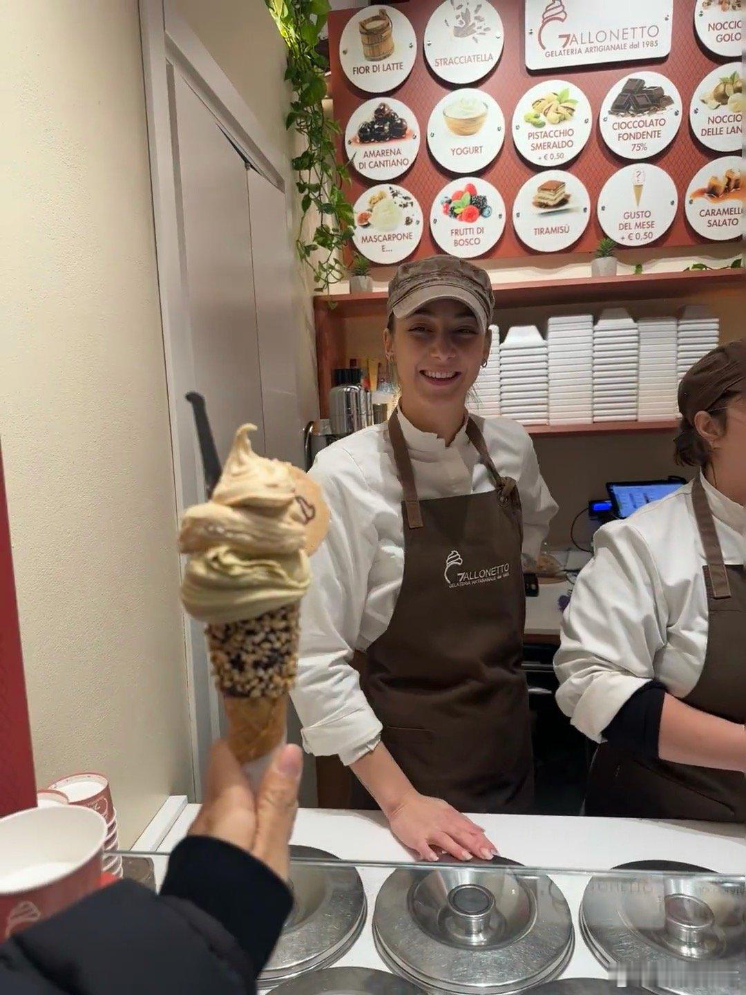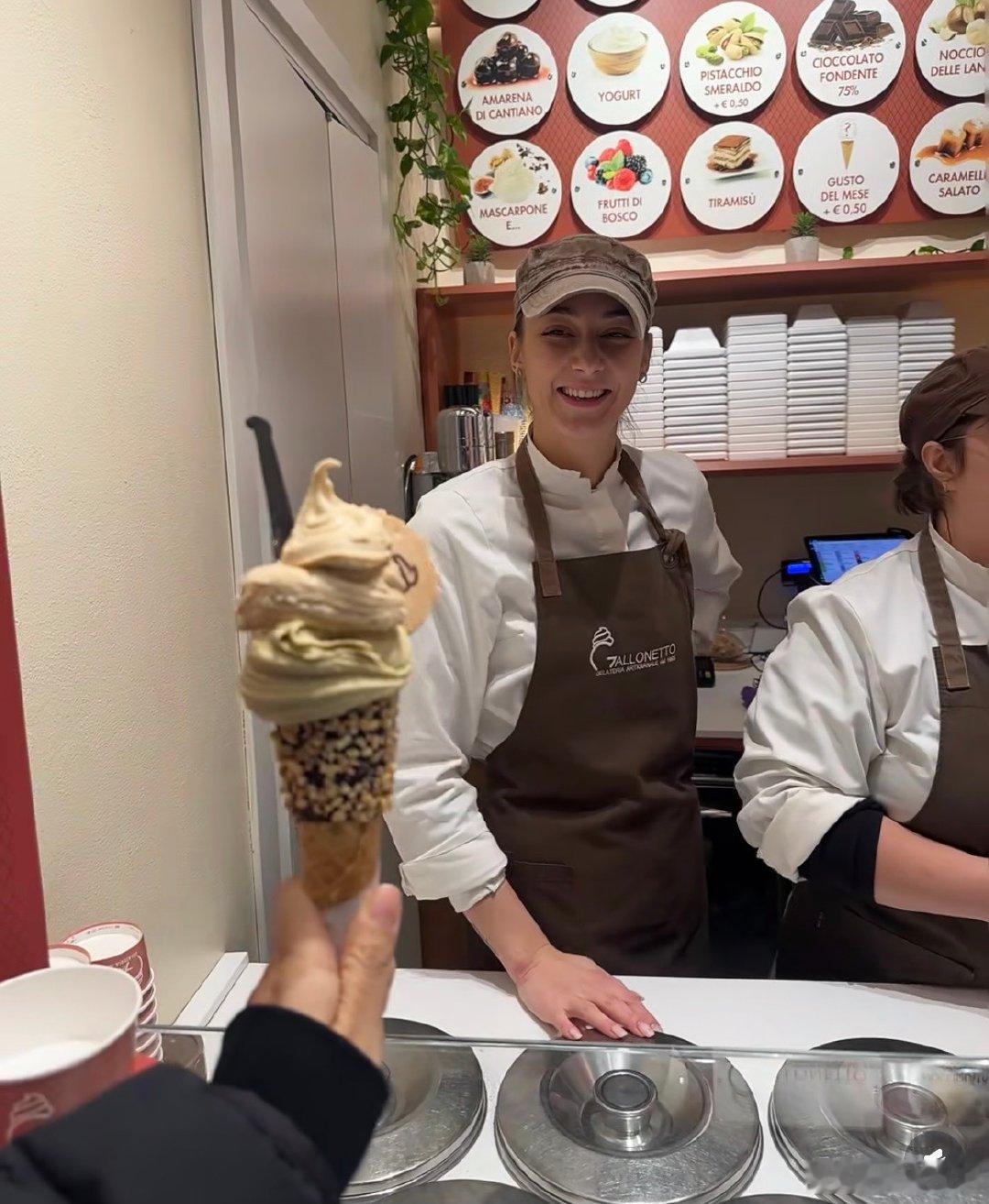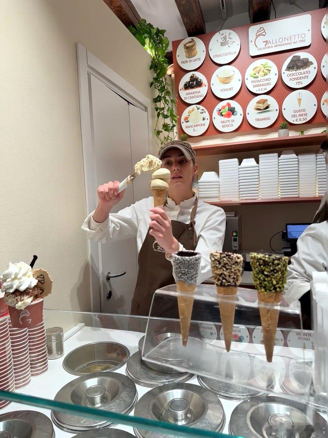 意大利冰淇淋店的服务员也太绝了吧!神似迪丽热巴,这颜值让我瞬间想去意大利旅游