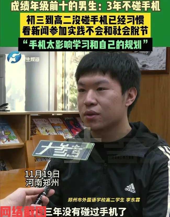 河南郑州有名高二男生被人关注。 这名男生身有自律的行为,因为他在学习里整整三年的时间,他没有像其他同学一样整天离不开手机,而是在用心学习不碰手机,让自己的成绩得到年级前十名的收获。 这一点男生所具备的学习毅力得到众人的认可,他让我们看到一个学习好的同学所具备的特性,以自己果敢的行为杜绝了手机有的诱惑,让自己能够一心踏实把学习当做首位在进行里,让自己赢得成绩上的飞跃。 虽然没有玩手机但男生还是通过其他方式了解新闻与一些信息,并没有与同学们之间出现代沟脱节,只是在自己认定的世界里完成一项自己认定目标,与其手机让自己分心,不如把手机放开不去理睬。 正如同男生的用心,让自己看到了希望中的自己变得信心十足,这就是一个人要有的精神面貌,不为琐事而烦恼,直接明白自己心里的目标而努力,最终赢得美好结局。