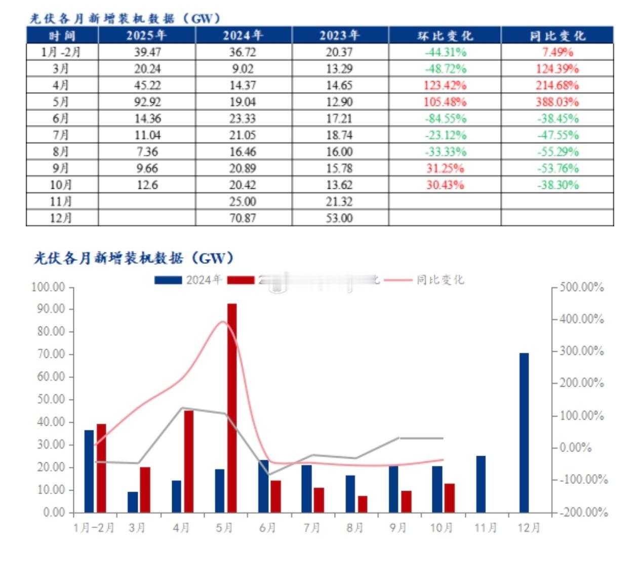 2025年10月国内光伏新增装机容量为12.6GW,环比上涨30.43%,同比下降38.3%(附图来源:Mysteel)