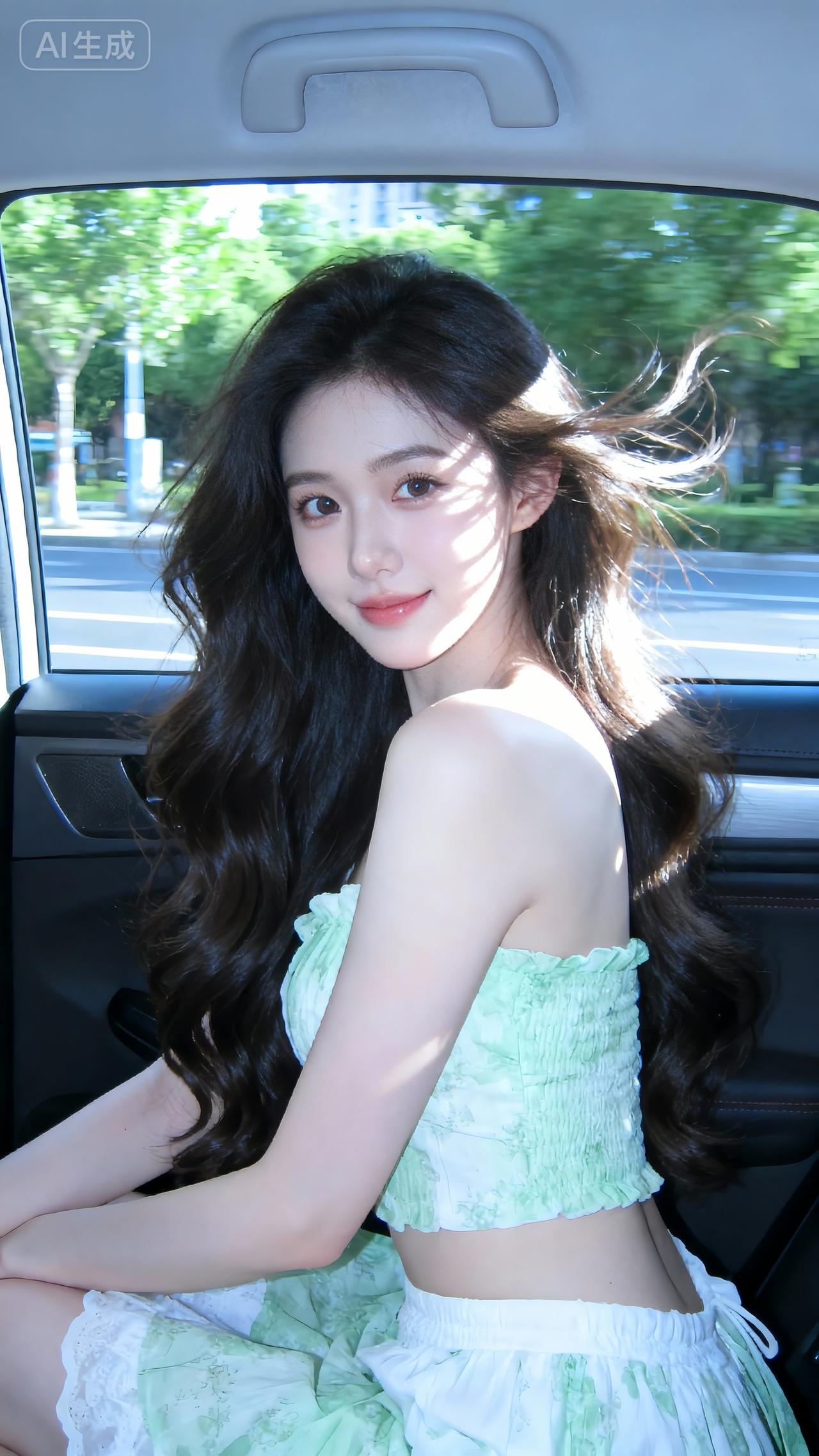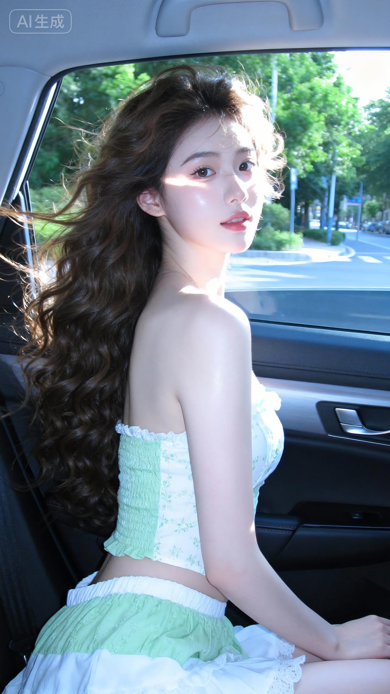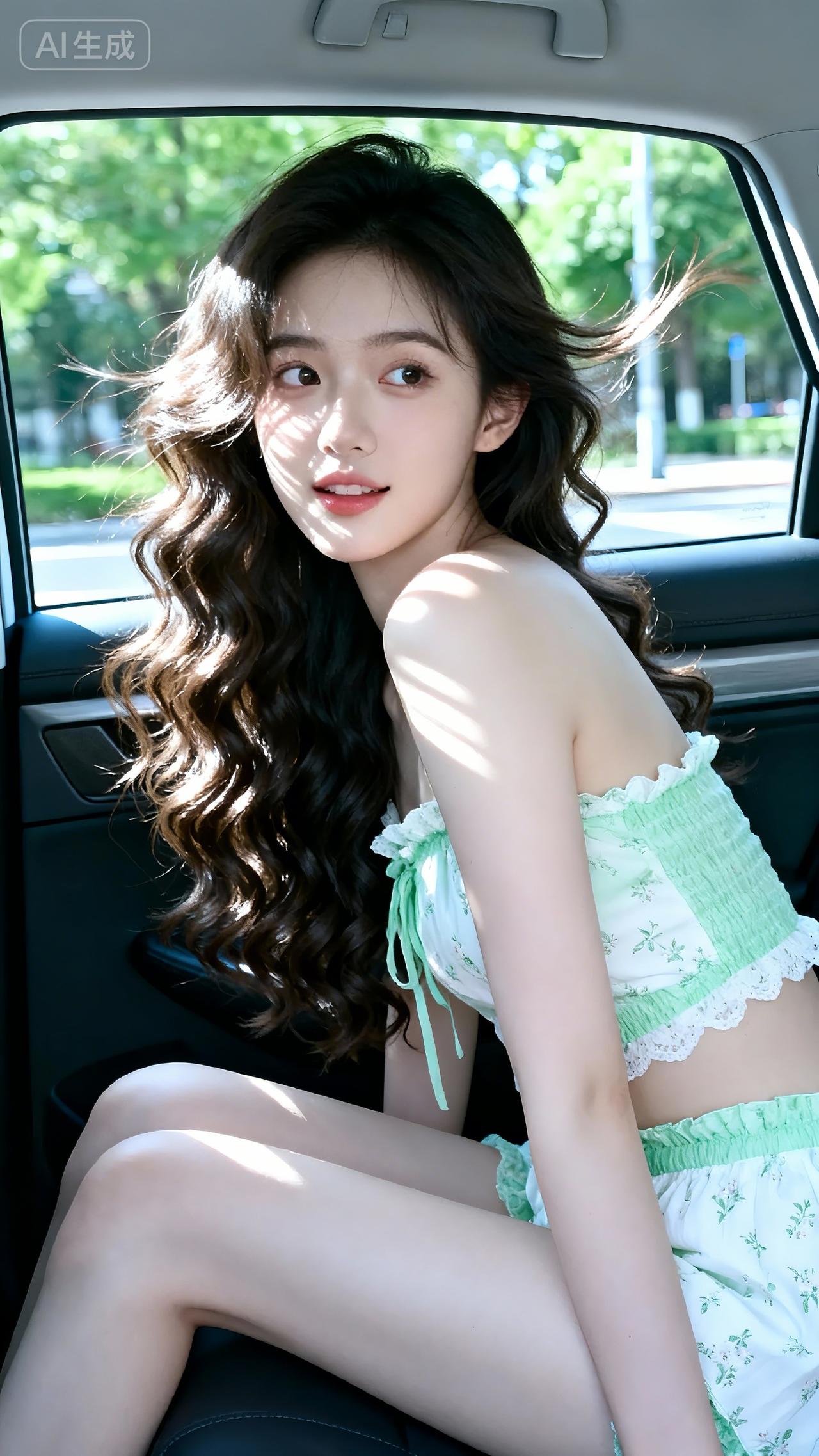 车内甜韵,绿碎花套装配卷发,纯欲清新夏日风棕色碎花裙 棕色碎花半身裙 复古蓝碎花裙