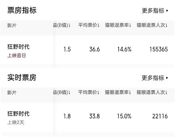 狂野时代网售占比才37%,退票率15%正常都90%以上,再低也不会低于80% 2