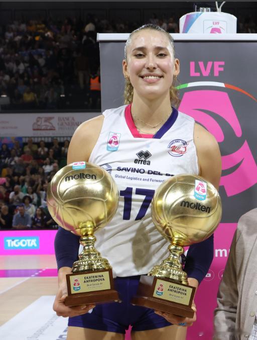 🔵⚪️ 意甲女排联赛截至第11轮,🇮🇹叶卡捷琳娜.安特洛波娃是目前最佳得分、最佳发球得分和边攻进攻成功率、拦网得分第2高的球员。👑 最佳得分263分 - 场均 20.2分💫 最佳发球得分27 ace - 局均 0.60 ace🔥边攻进攻成功率第2430扣208中26失误25被拦+成功率48.4%/有效率36.5%🙌 拦网得分第2位(包含副攻在内)28 拦网 - 局均 0.62个📍24-25赛季,她成为历史上单赛季常规赛中发球直接得分最多和总得分最高的球员。这个赛季目前,她的各项数据与上赛季相近,但效率更高。