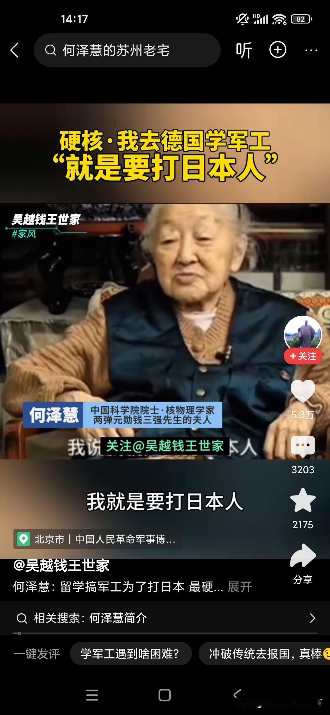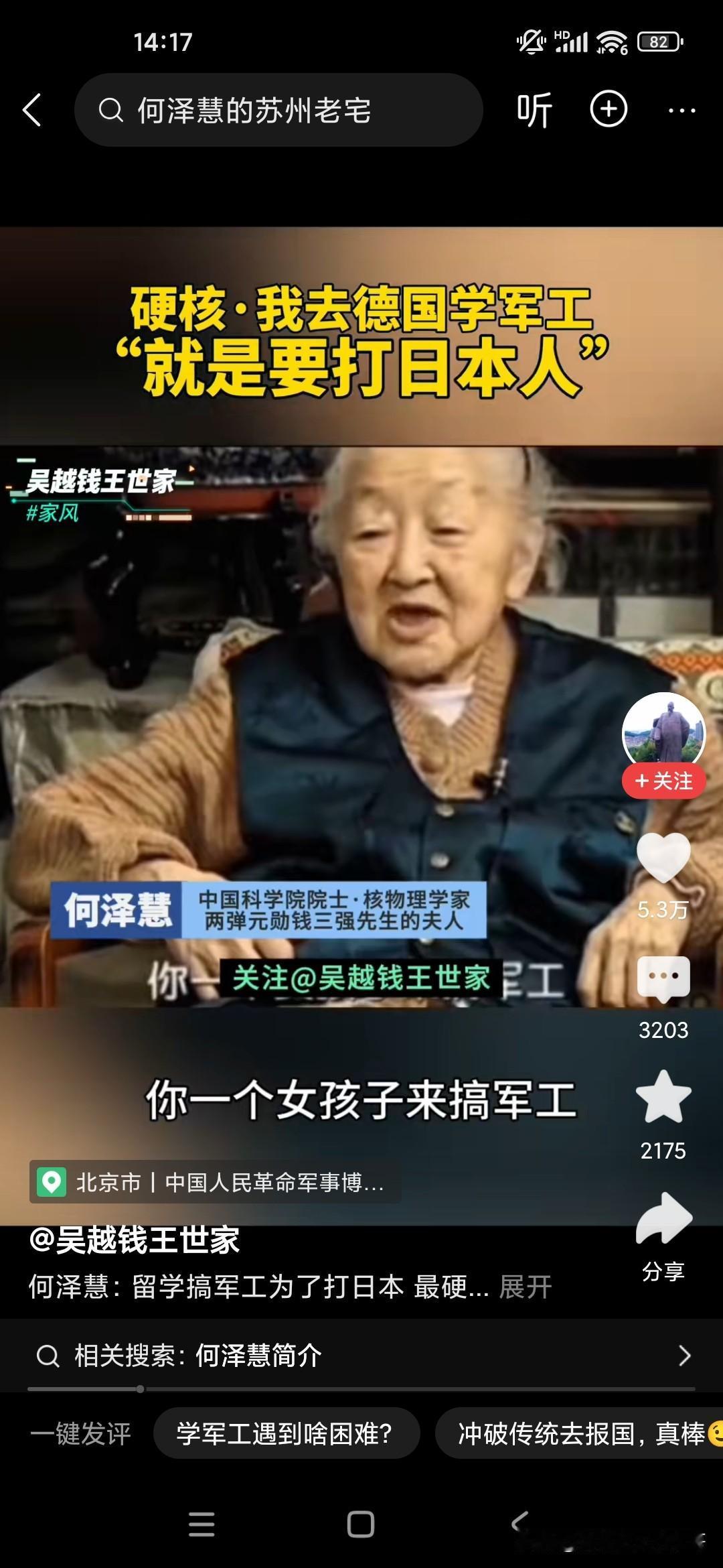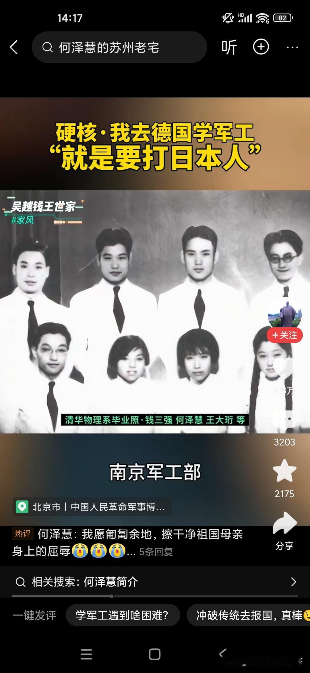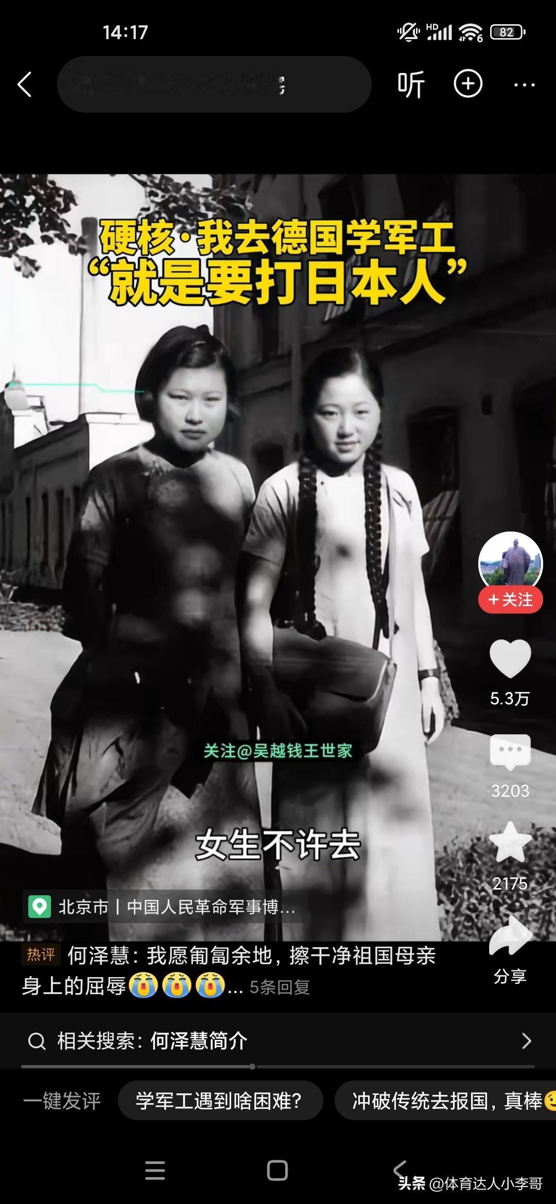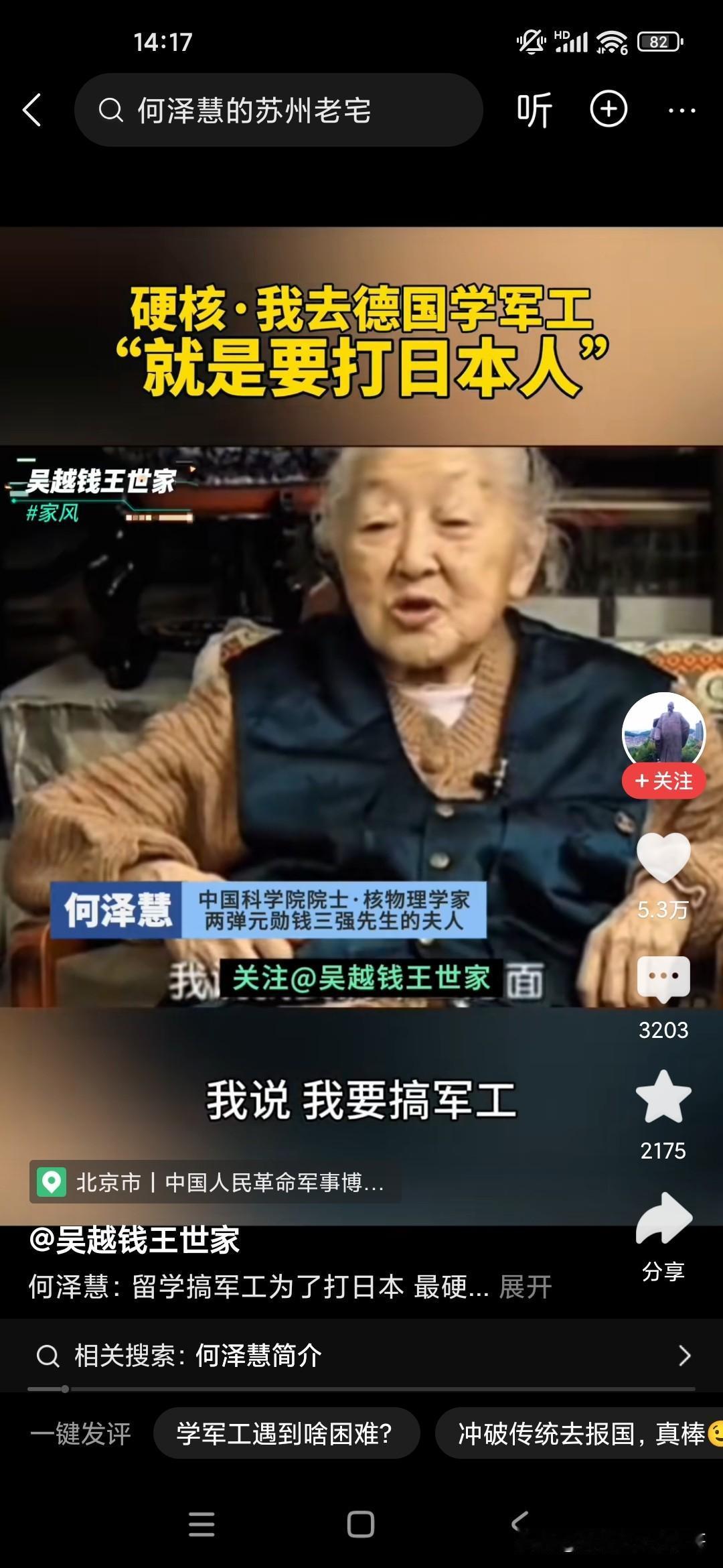 我一个女孩子学军工的目的很明确就是为了打日本人! 这个老太太何泽慧真的很了不起,她去德国学军工就是为了打日本人,当时日本人的铁蹄已经深入中华大地,到处水深火热,她目睹了日本人的暴行,当时社会还不允许女性学军工,没办法,她就去了德国,目的就是打日本人,赶走日本人,她毅然决然拿着自己的积蓄去了德国学军工,最终学成归来,还嫁给了科学家钱三强,她自己也成了著名的核科学家,为祖国的军事进步做出了巨大的贡献!不得不感叹,那个年代的人真的很纯粹呀,很多人眼里只有国家,民族,哪有个人呀!真是时势造英雄呀!