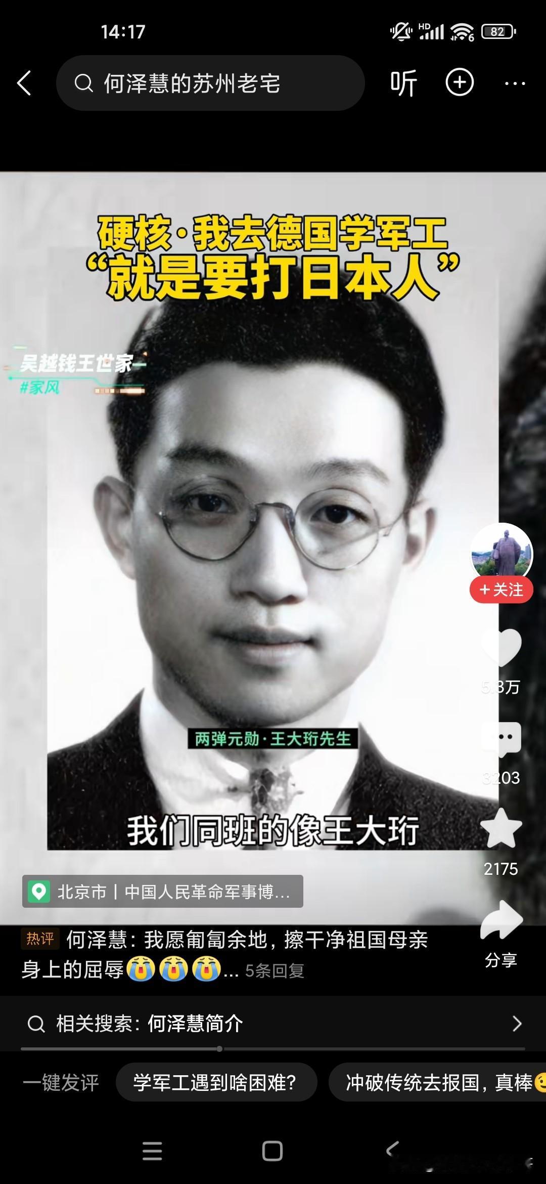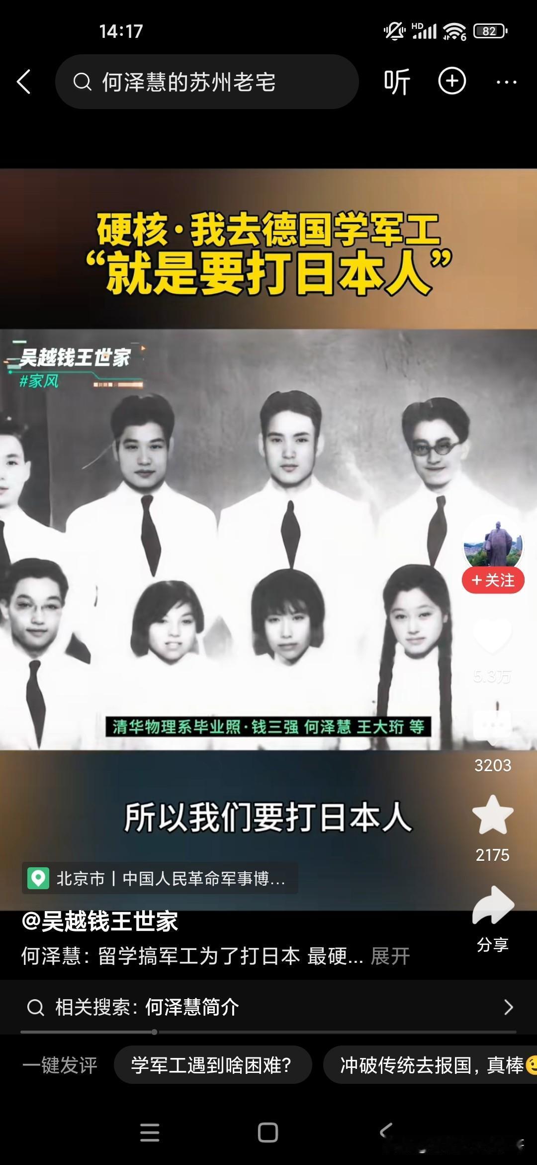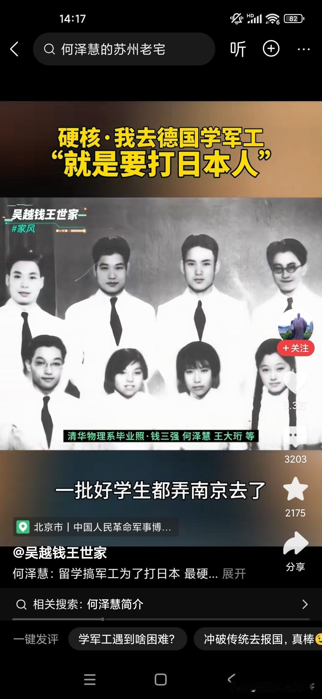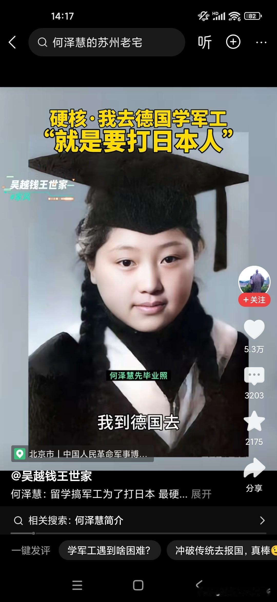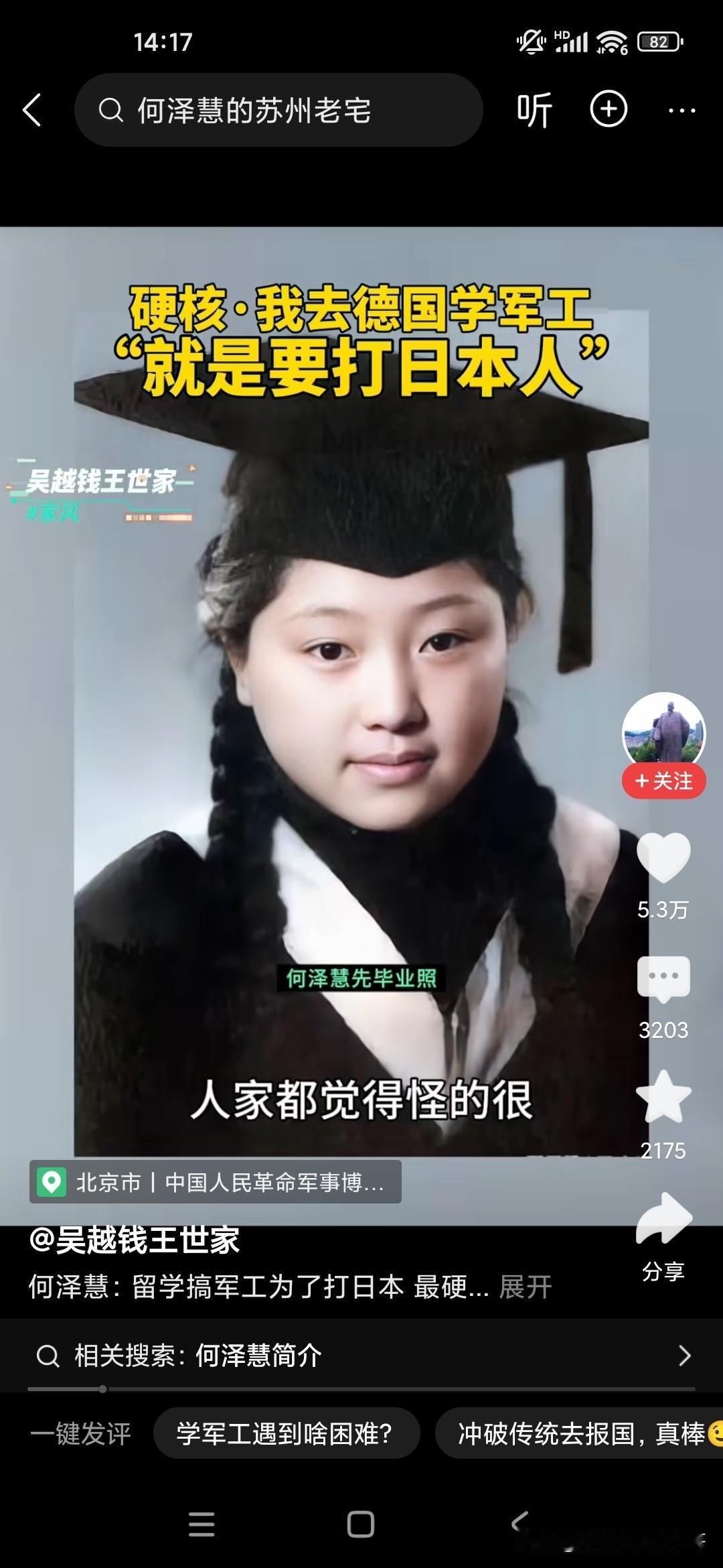 我一个女孩子学军工的目的很明确就是为了打日本人! 这个老太太何泽慧真的很了不起,她去德国学军工就是为了打日本人,当时日本人的铁蹄已经深入中华大地,到处水深火热,她目睹了日本人的暴行,当时社会还不允许女性学军工,没办法,她就去了德国,目的就是打日本人,赶走日本人,她毅然决然拿着自己的积蓄去了德国学军工,最终学成归来,还嫁给了科学家钱三强,她自己也成了著名的核科学家,为祖国的军事进步做出了巨大的贡献!不得不感叹,那个年代的人真的很纯粹呀,很多人眼里只有国家,民族,哪有个人呀!真是时势造英雄呀!