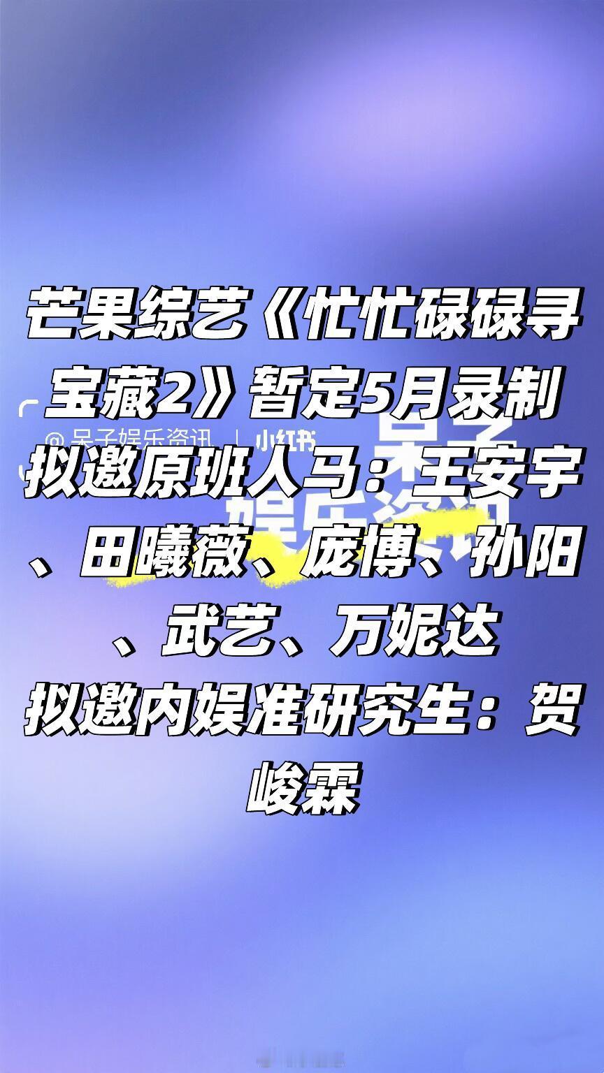 芒果综艺《忙忙碌碌寻宝藏2》暂定5月录制🍠拟邀原班人马忙忙碌碌寻宝藏2‖