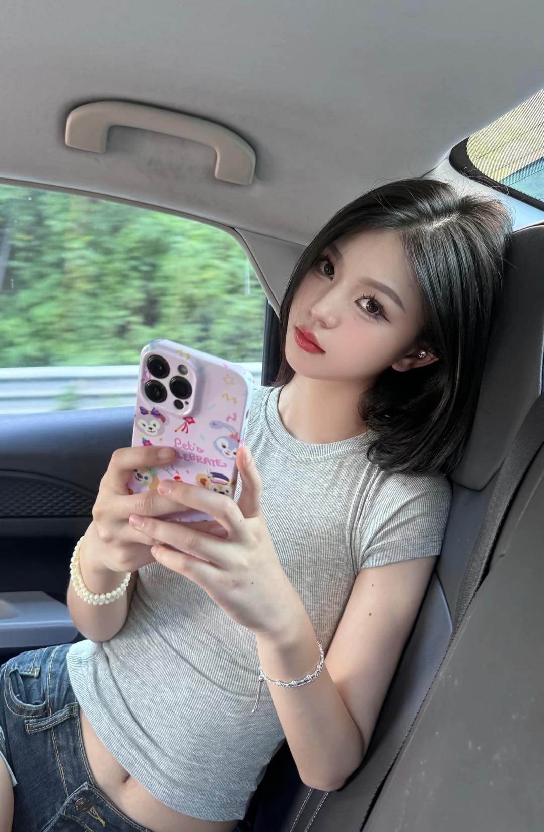 车窗外风景如画,车内的她美得像一幅画!🚗💄👗