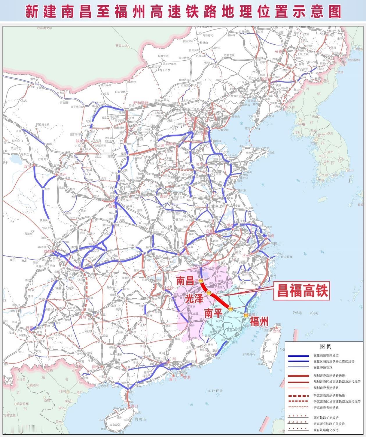 速看!昌福高铁最新线路图曝光![灵光一闪] 值得大家注意,昌福高铁南昌至南平段在图中被显著标红,而福州至南平之间只有一段既有的铁路,这段铁路即2015年开通的合福高铁。换句话说,昌福高铁若按该图建设工程实质将成为新建南昌—南平段高铁,而福州至南平(确切地说是延平)这一段将利用合福高铁运行。 而原先规划的福州西站其建设必要性恐怕将降低不少。 福州身边事 铁路