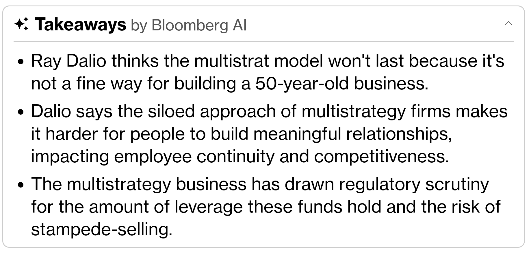 Dalio 今天在采访时,表达了对多策略产品(多空/量化/对冲)的担心。由于产品设计时的刻意多元化,反而导致各类资产的正相关性均上升,比如美股/黄金/比特币/铜/信用债等,这或许是恐慌性抛售的诱因。就像11月我们看到的、跨资产的连锁下跌反应,从甲骨文的企业债,再到比特币和美股,然后黄金和非美股市。