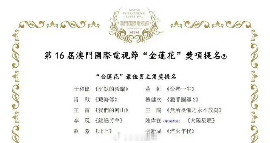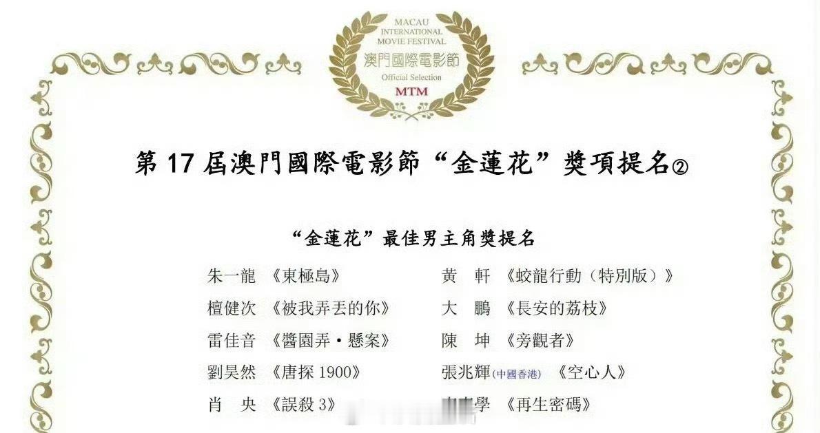 恭喜檀健次获得第17届澳门国际电影节、第16届澳门国际电视节最佳男主双提名。
